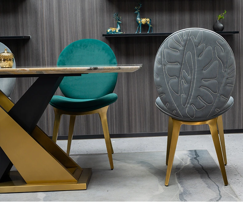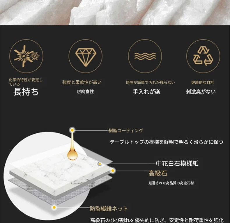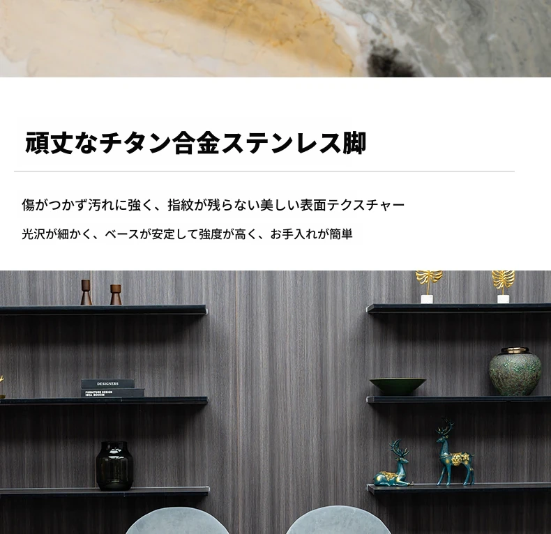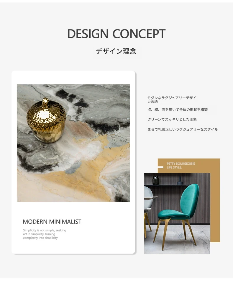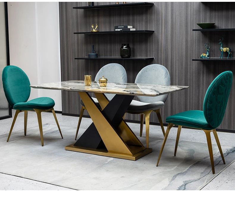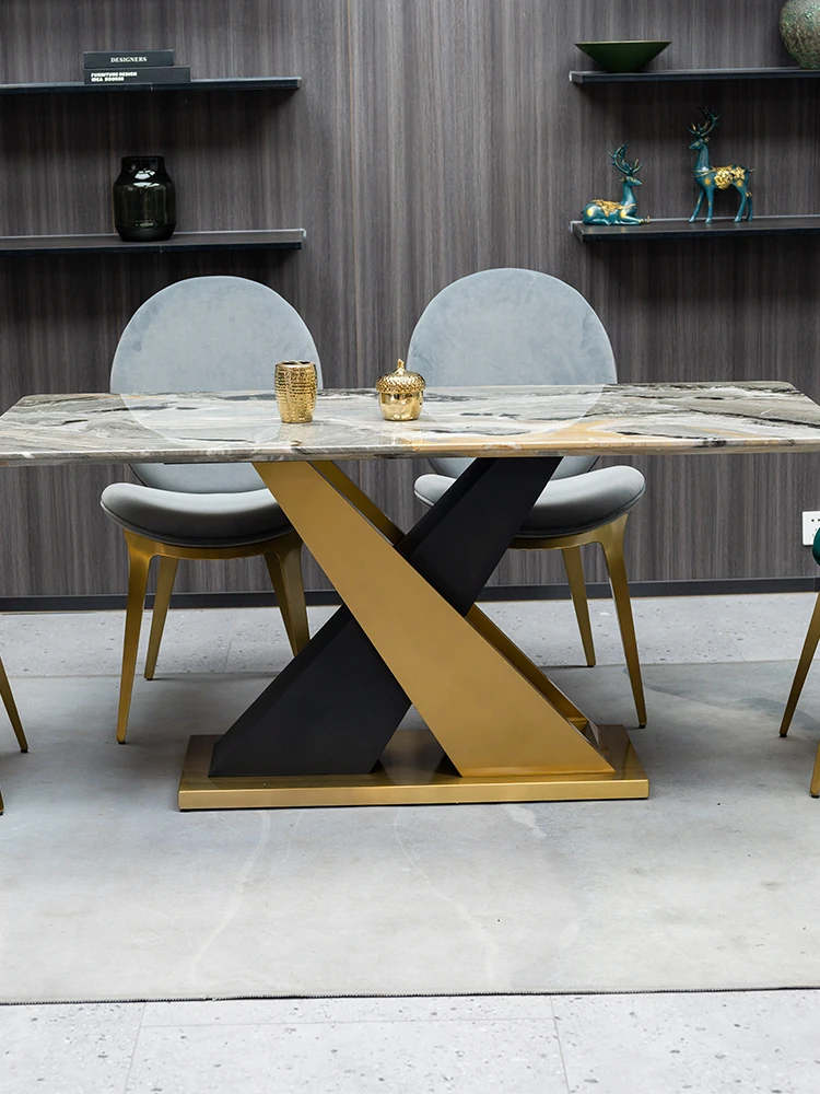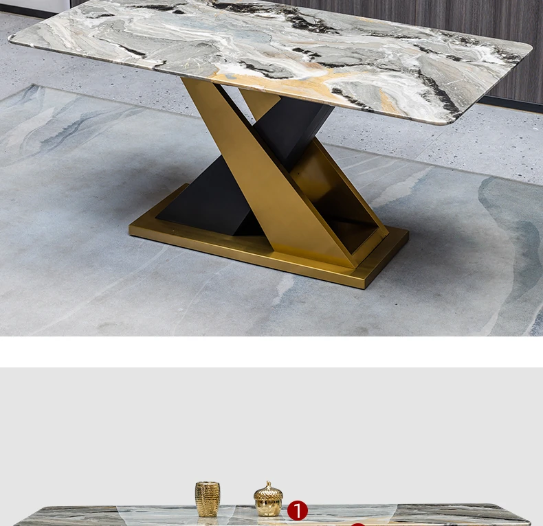 ラグジュアリーな石製ダイニングテーブルセット - イタリアンスタイルの長方形ミクロクリスタル石テーブルと椅子の組み合わせ。高級ホテルやヴィラのモデルルームに最適な大理石デザインで、洗練された空間を演出します。