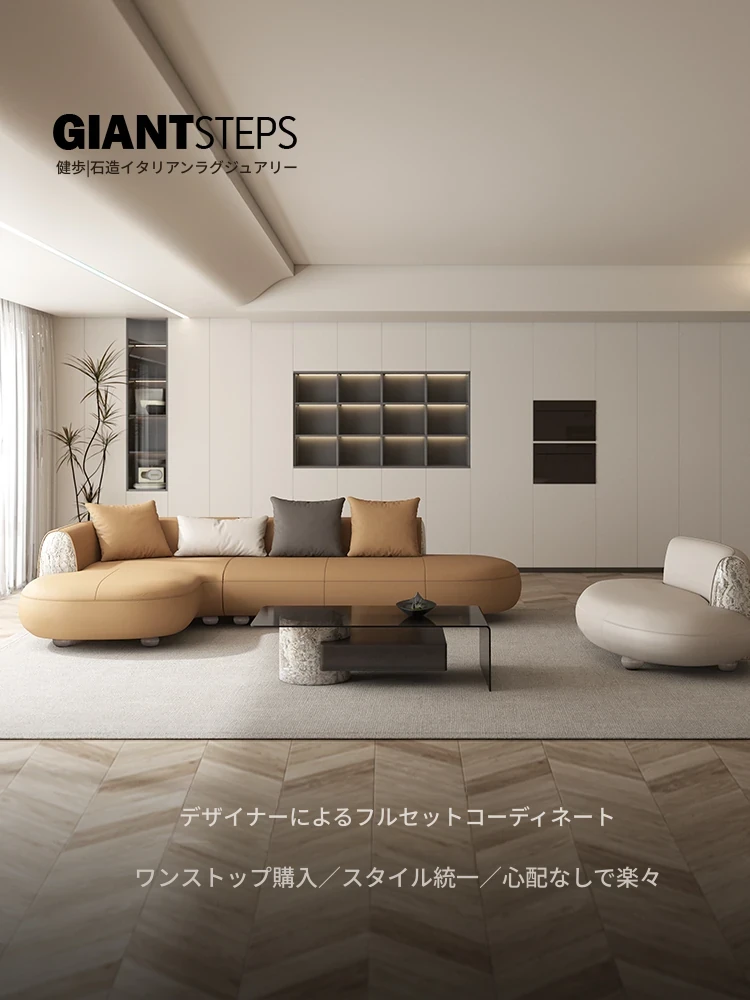 シンプルで洗練されたイタリア直輸入ブランドの軽奢華ソファ|本革製・モダンデザインのクリエイティブな家具で、あなたのリビングルームをスタイリッシュに演出します!