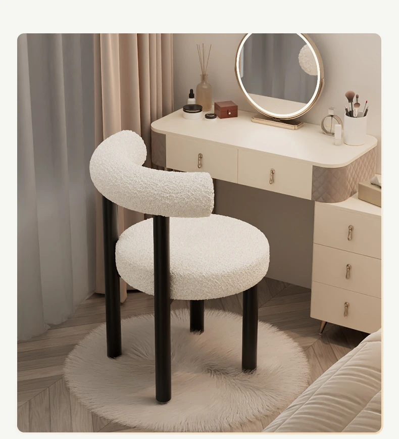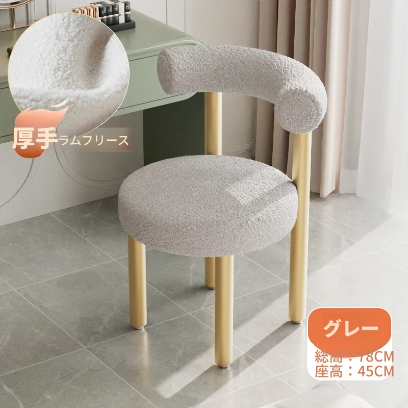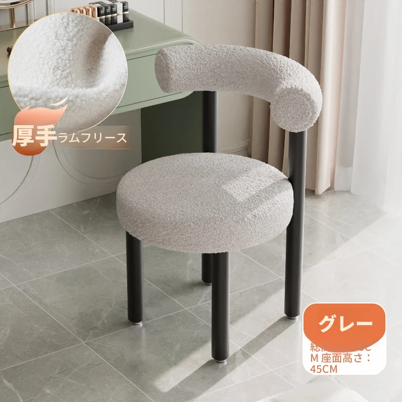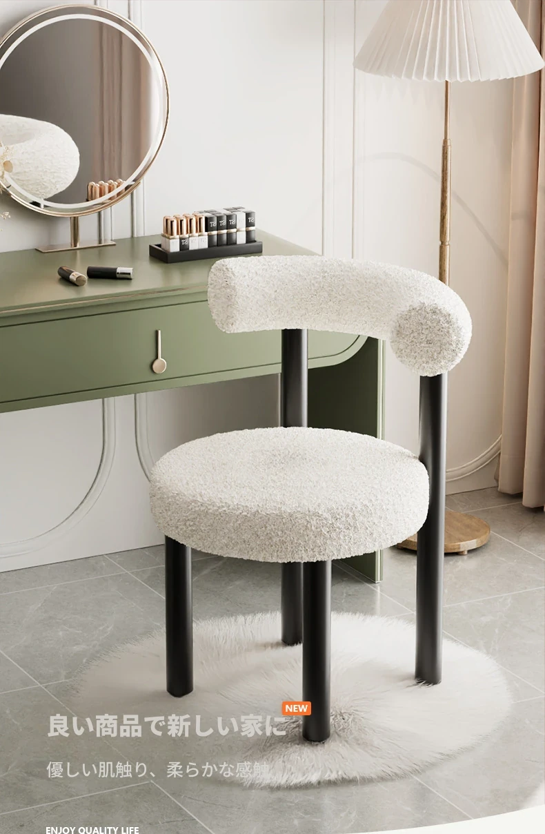 シンプルなラムフェルトのカジュアルチェア|バルコニーや寝室にぴったりなクリーミーなデザイン|背もたれ付きのカーブパイプメイクアップスツール|インスタ映え間違いなしの家庭用メイクチェア!