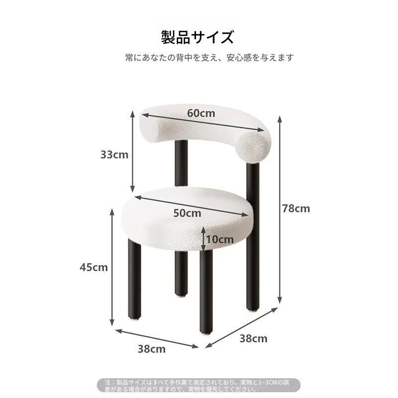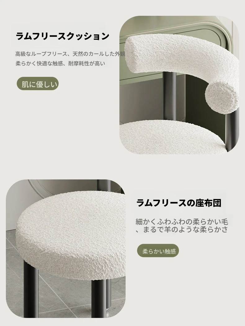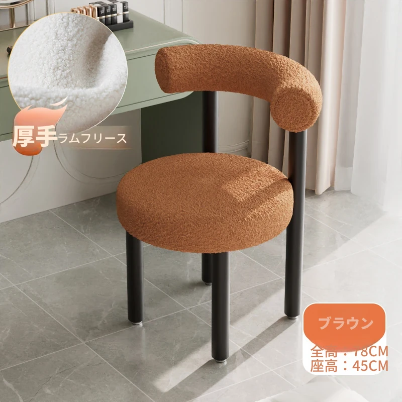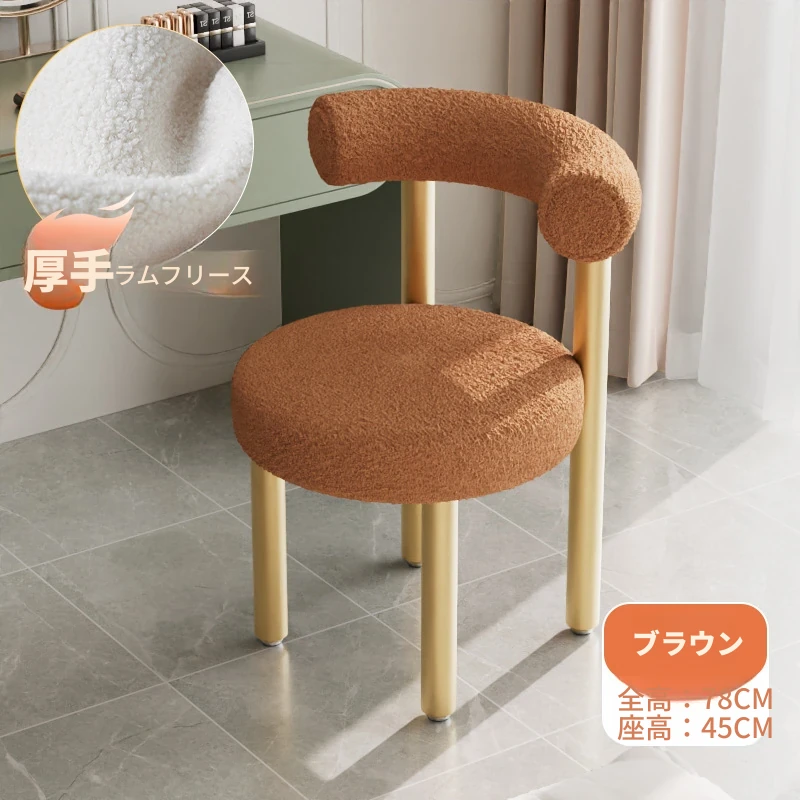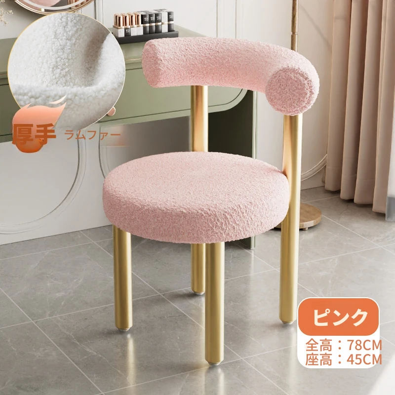シンプルなラムフェルトのカジュアルチェア|バルコニーや寝室にぴったりなクリーミーなデザイン|背もたれ付きのカーブパイプメイクアップスツール|インスタ映え間違いなしの家庭用メイクチェア!
