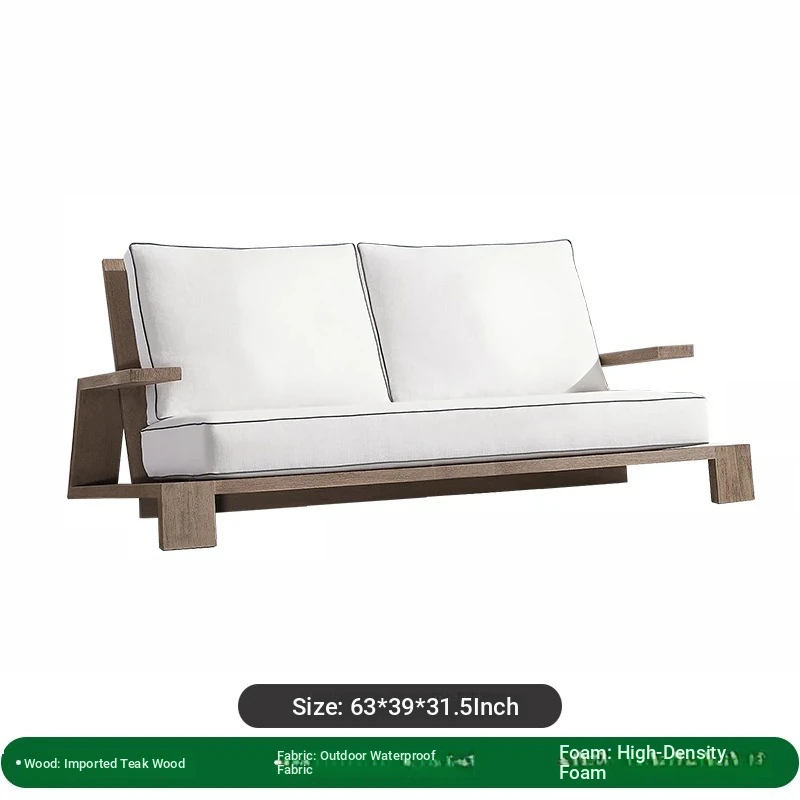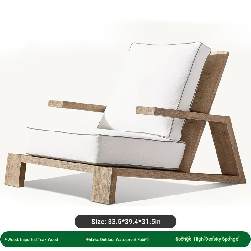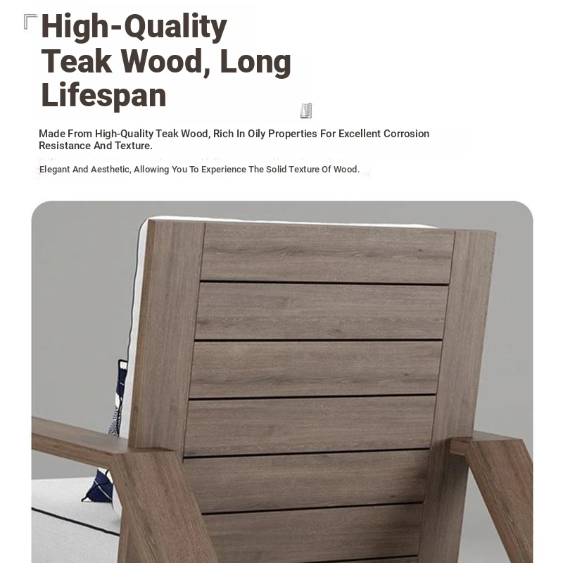 Minimalist Outdoor Teak Waterproof and Sunproof Garden Patio Lazy Sofa - Scandinavian Style Solid Wood Furniture Set for Relaxation