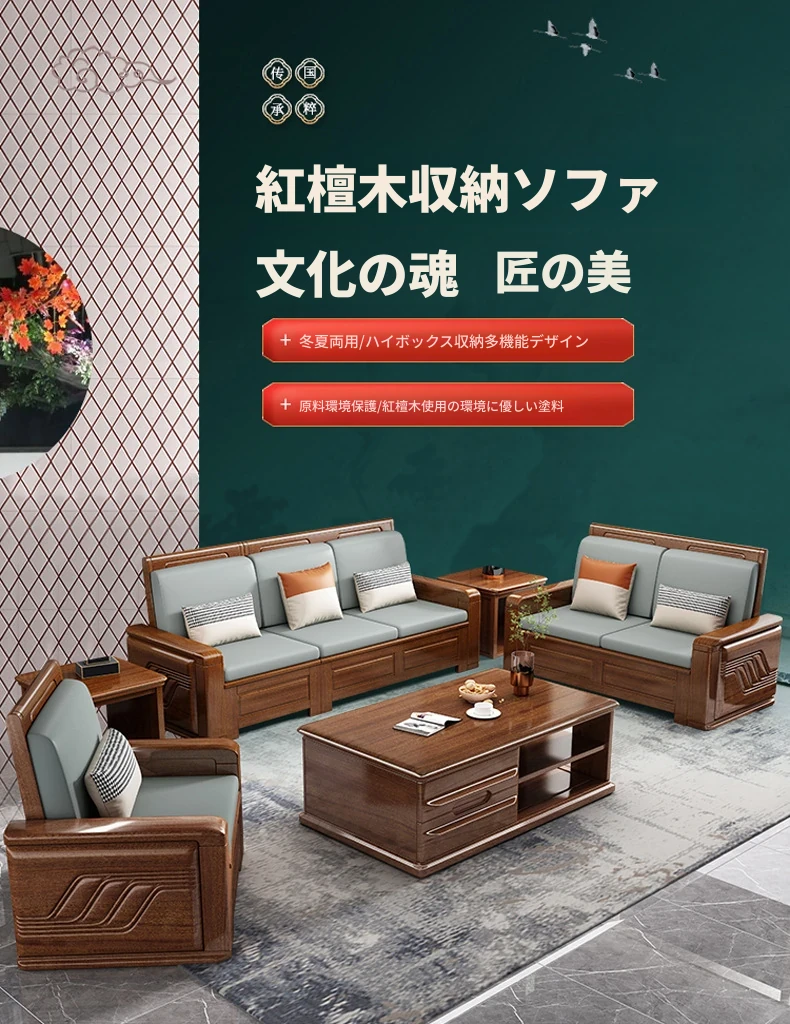 現代中式紅檀木ソファー - シンプルでラグジュアリーなスタイルの実木リビング家具、貴妃型コンビネーションソファーをメーカー直販でお届け!あなたの居間に上質な風格を。