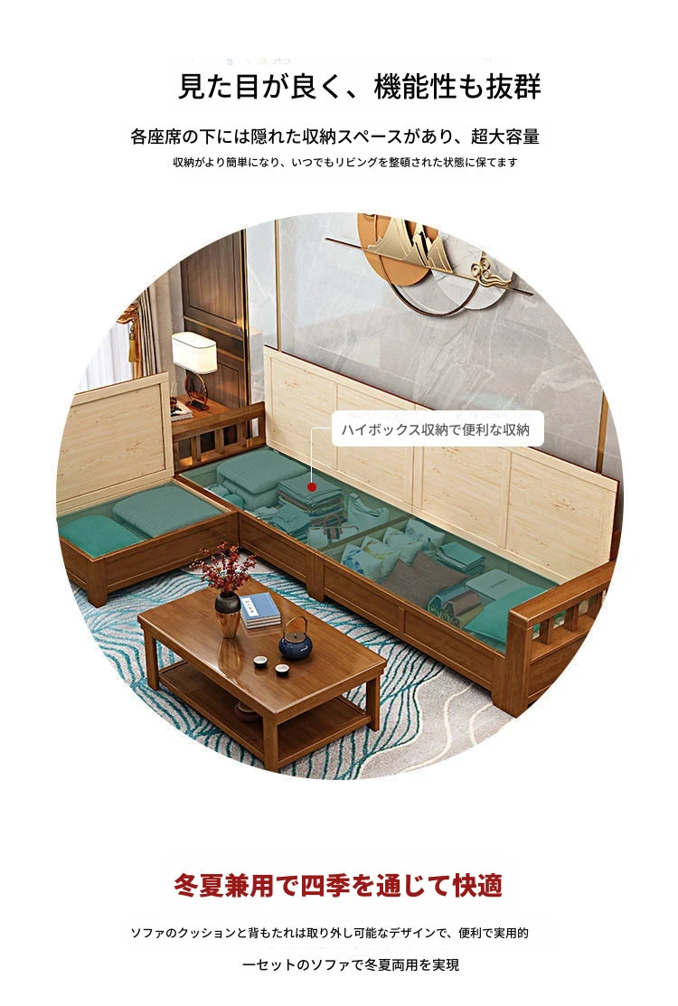 新中式デザインのシンプルな無垢材ソファ!貴妃スタイルのリビング用収納付きハイタイプソファセット。小型住宅にもぴったり!快適さと美しさを兼ね備えた家具で、あなたの空間を素敵に演出します。