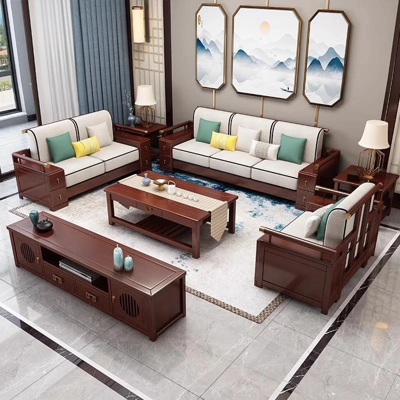 新中式スタイルの小型リビングルーム用高級木製コーヒーテーブルセット - モダンでシンプルなデザイン、実用的なソファ家具。おしゃれで機能的なお部屋作りに最適です!