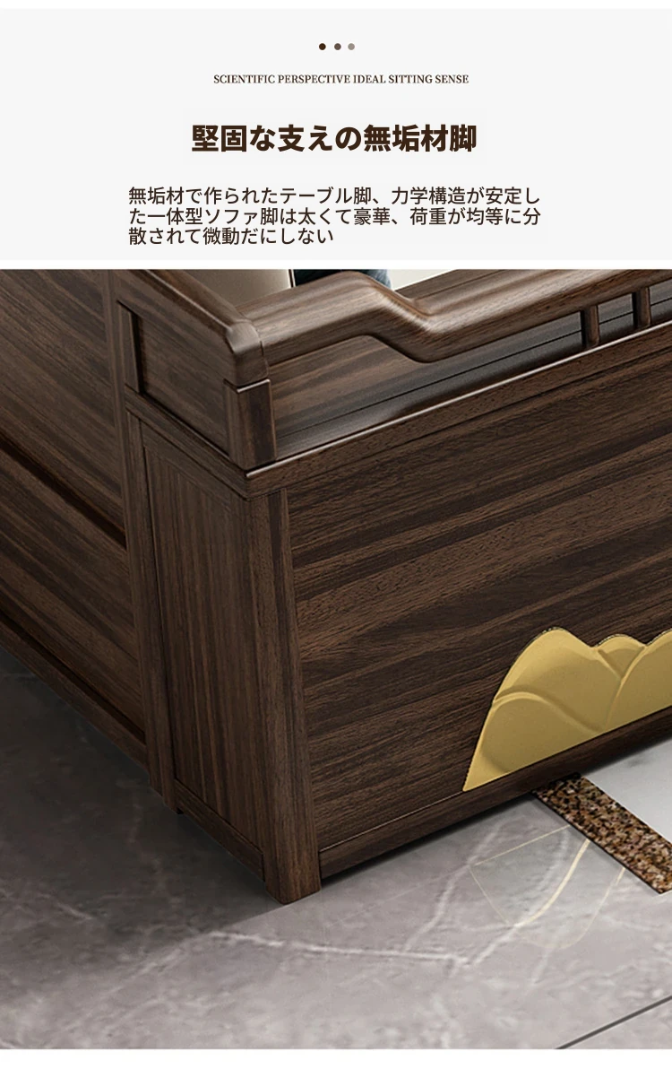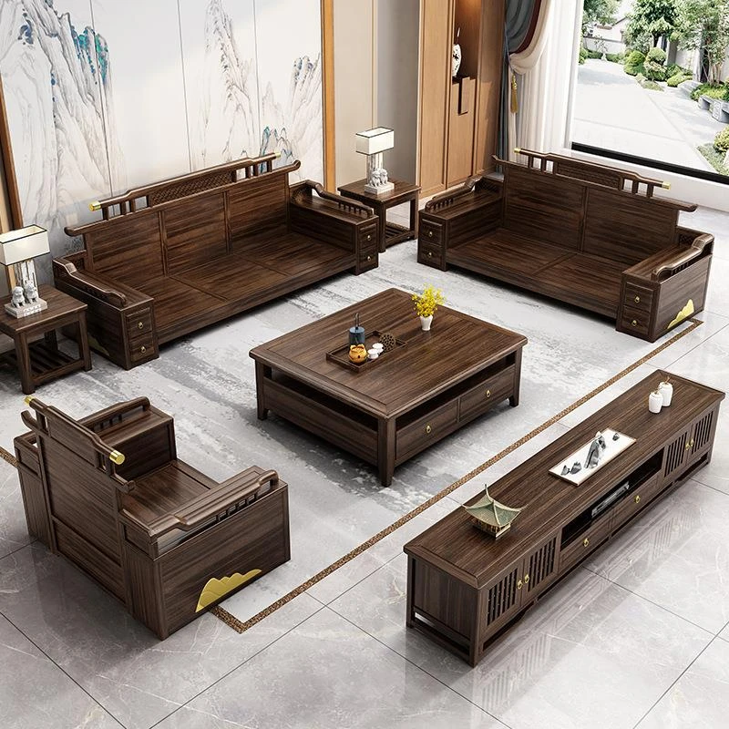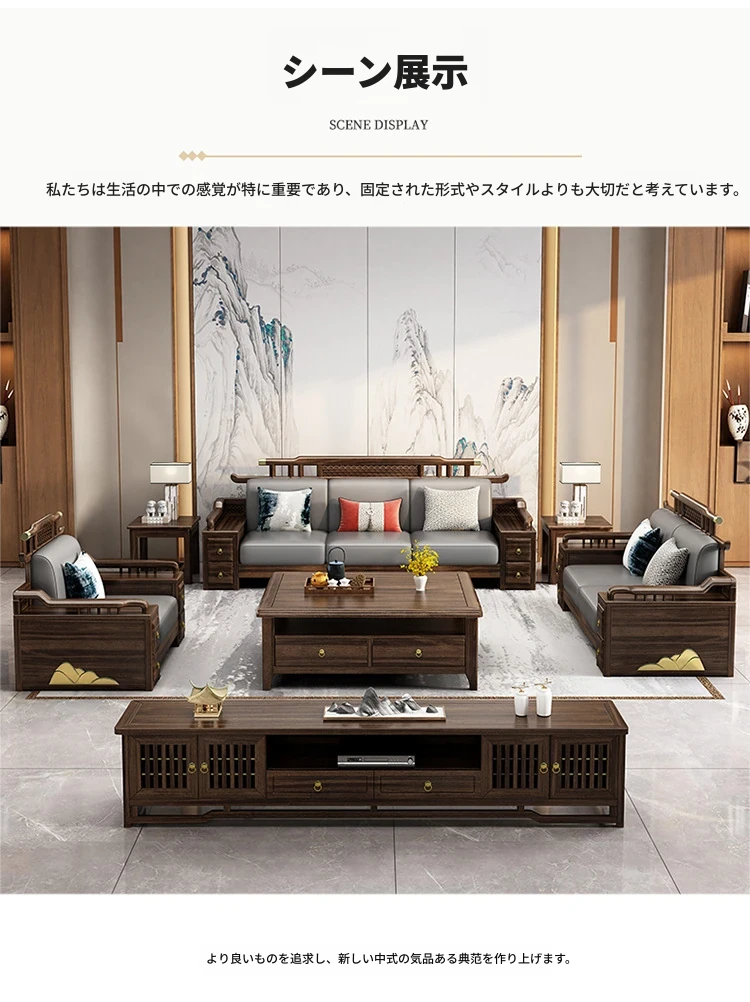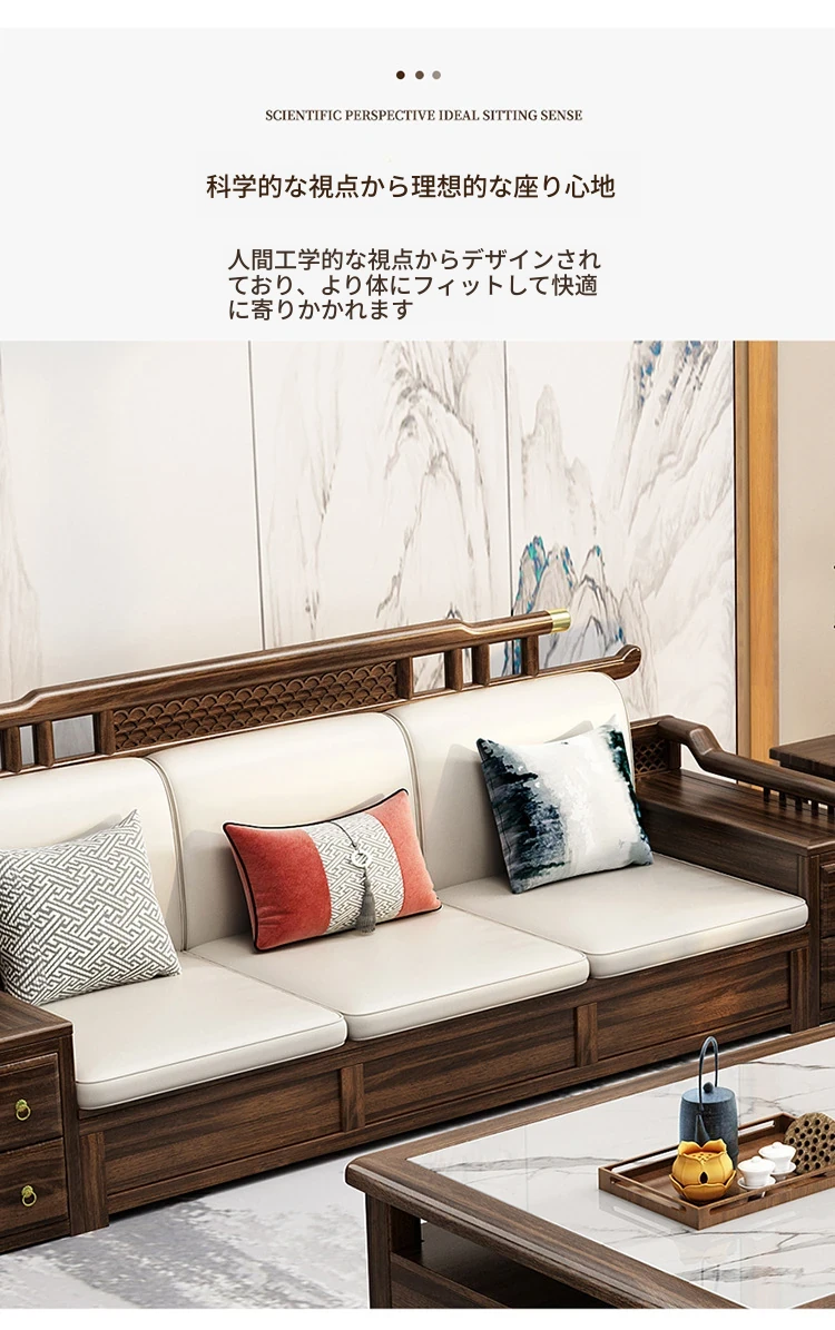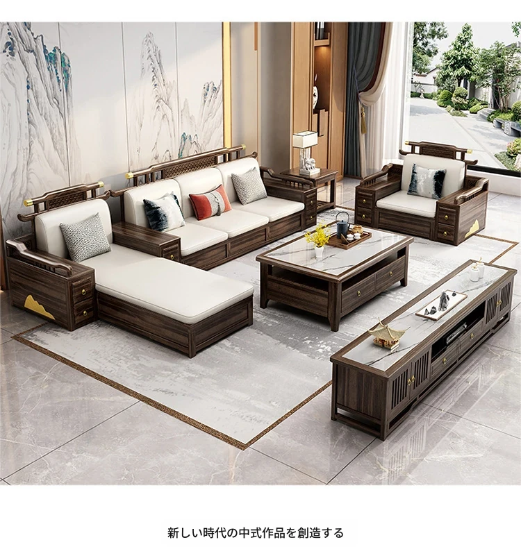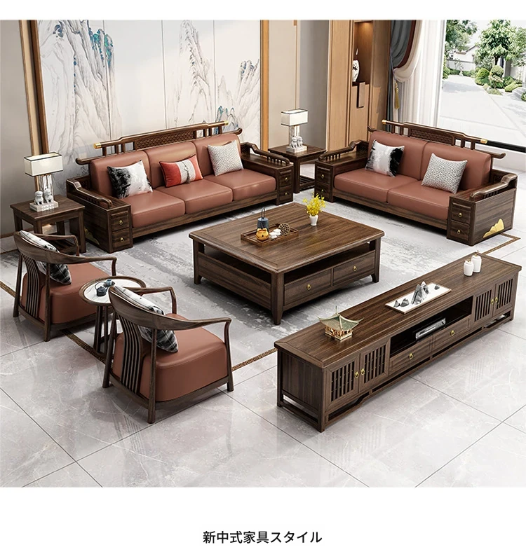 新中式ウッドウッドソファセット - 大小戸型にぴったり!別荘や現代の家に最適な全屋コーディネート。高級感あふれるウッド素材で、居心地の良い空間を演出します。