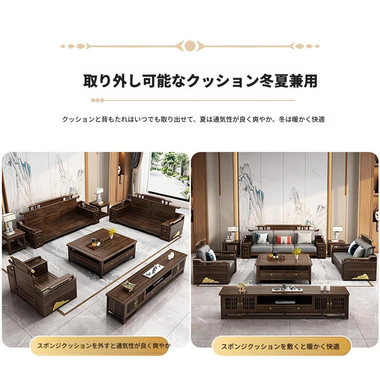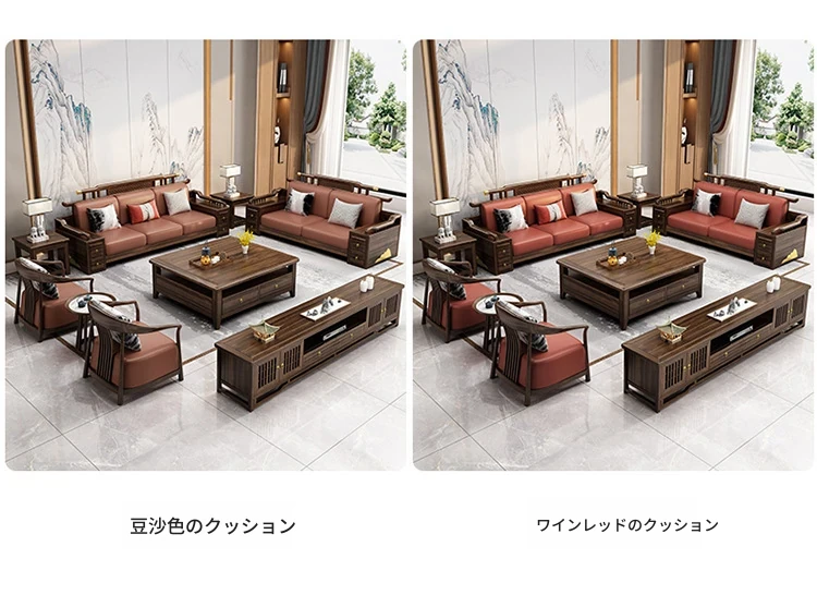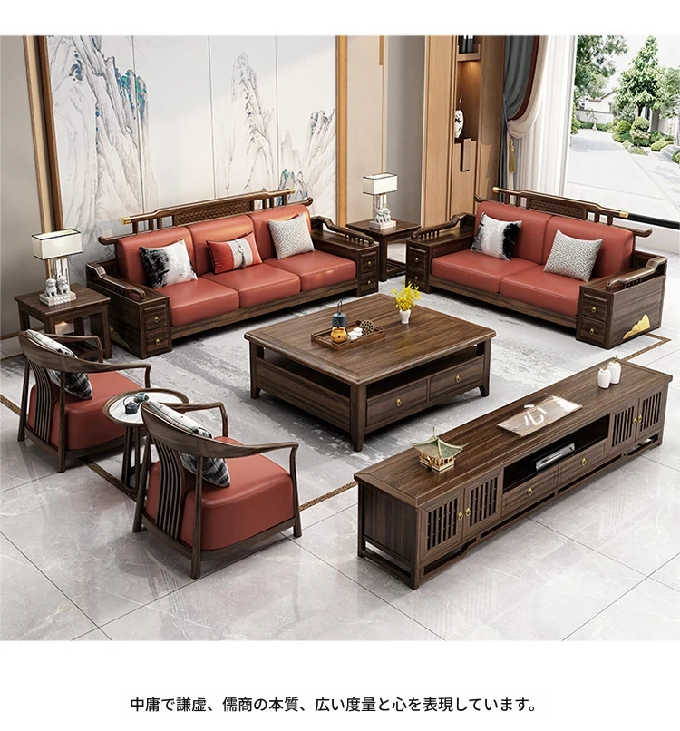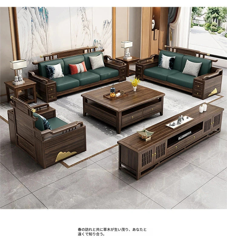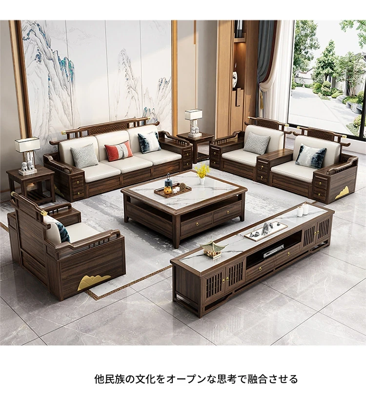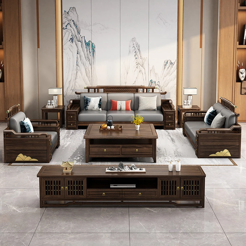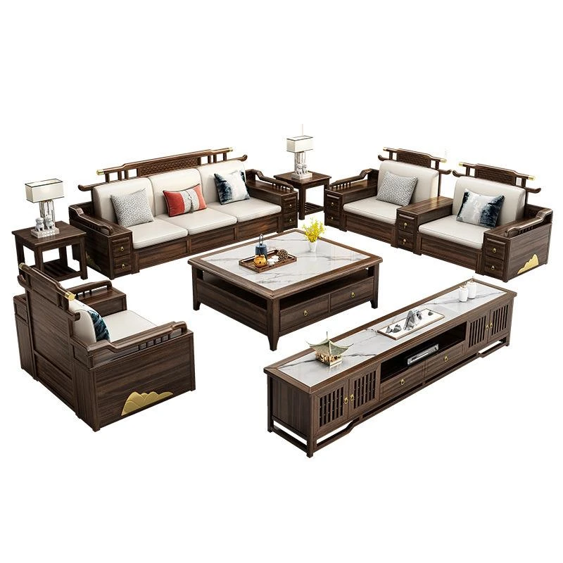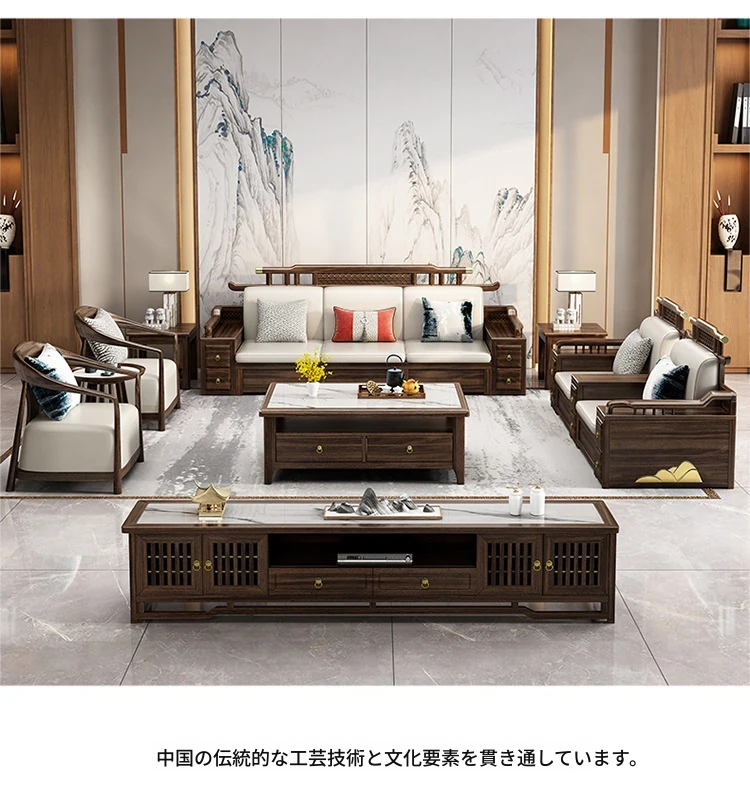 新中式ウッドウッドソファセット - 大小戸型にぴったり!別荘や現代の家に最適な全屋コーディネート。高級感あふれるウッド素材で、居心地の良い空間を演出します。