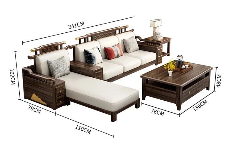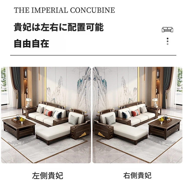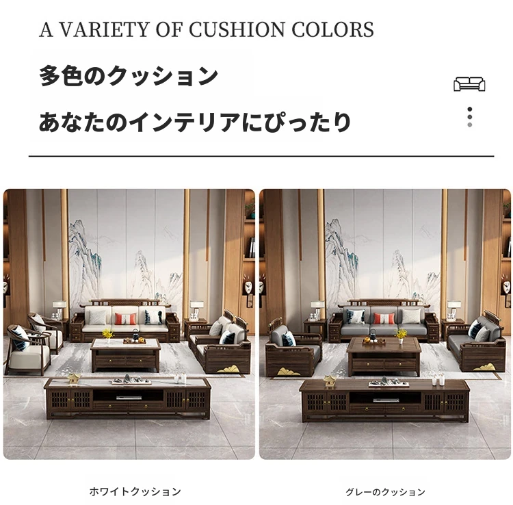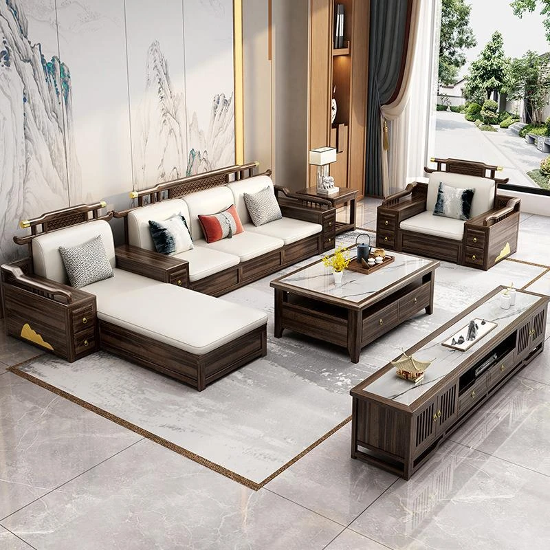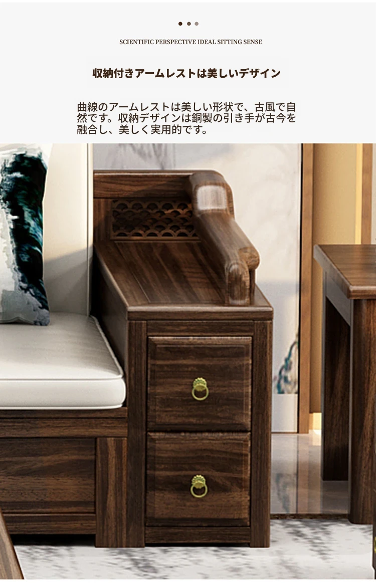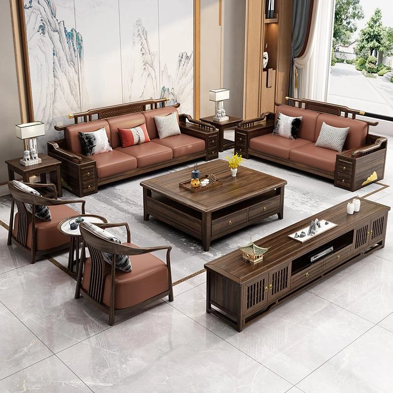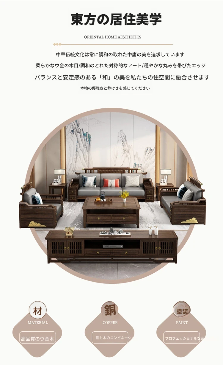 新中式ウッドウッドソファセット - 大小戸型にぴったり!別荘や現代の家に最適な全屋コーディネート。高級感あふれるウッド素材で、居心地の良い空間を演出します。