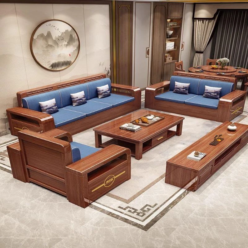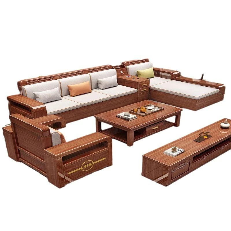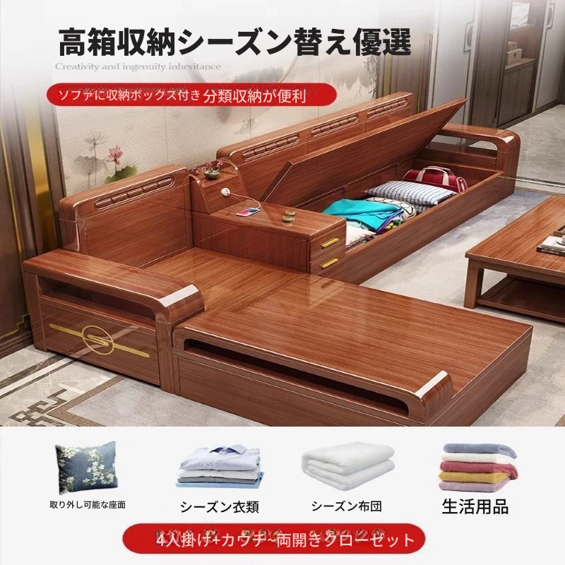 中式胡桃木全実木ソファ - 冬夏兼用、モダンでシンプルなデザイン、大小問わずフィットする収納付きリビングソファ!あなたの家にスタイルと機能性をプラスします!