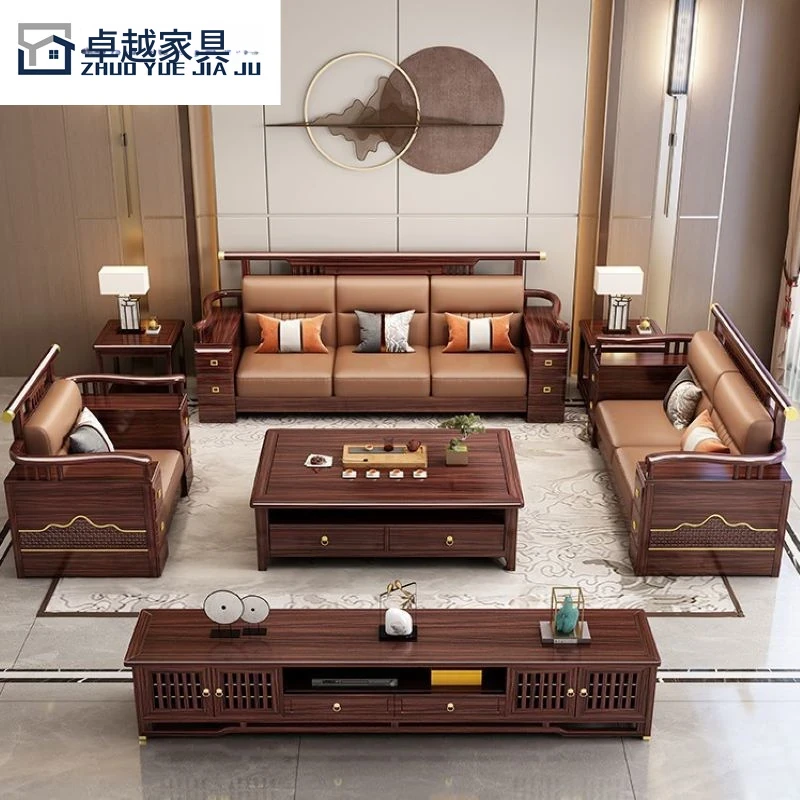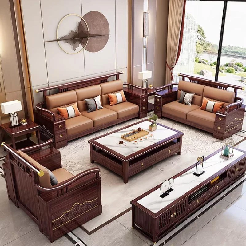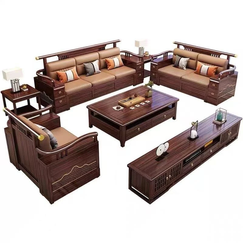 新中式ウッドウッドソファセット - ラグジュアリー感漂う現代的なデザイン!広々としたリビングにぴったりの収納機能付き、高級ヴィラに最適な高品質家具。