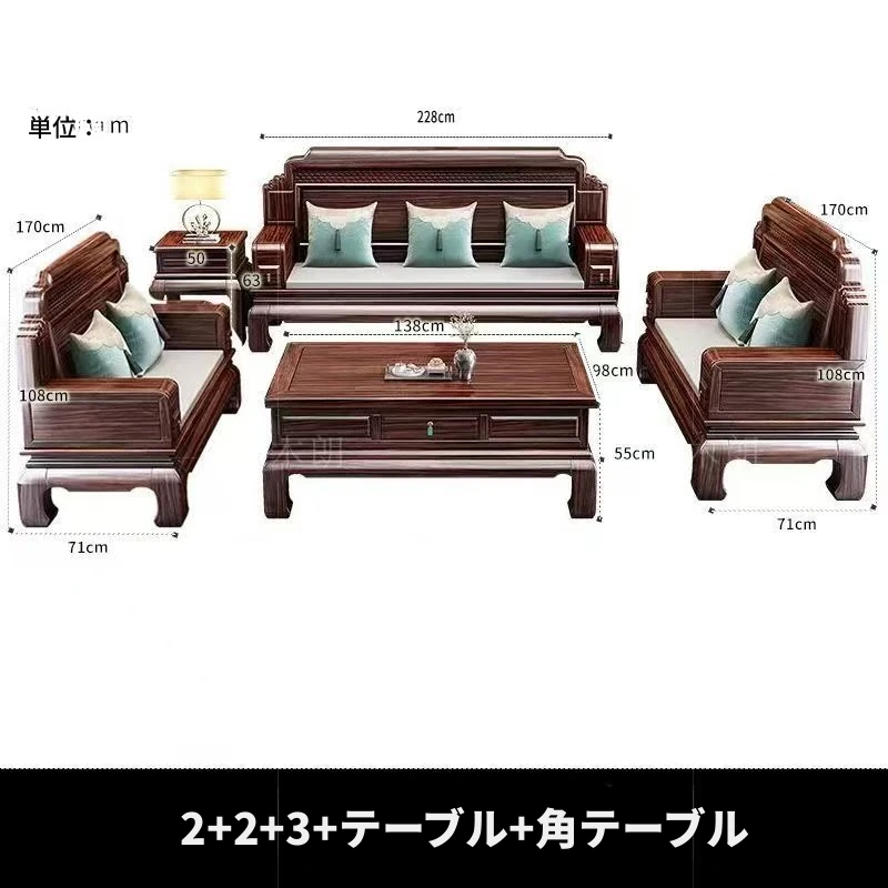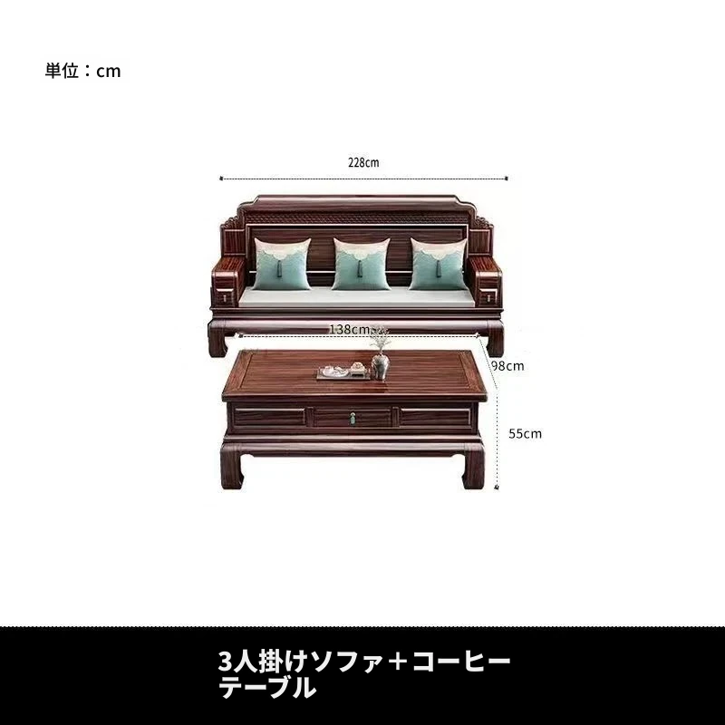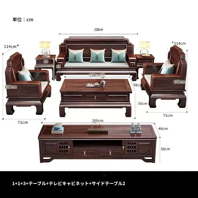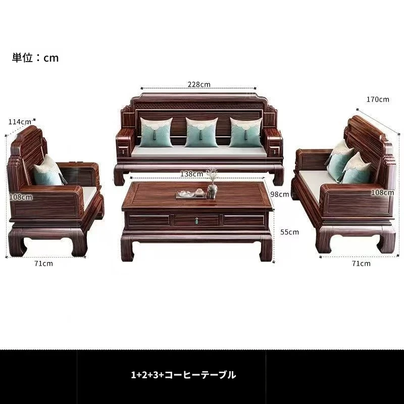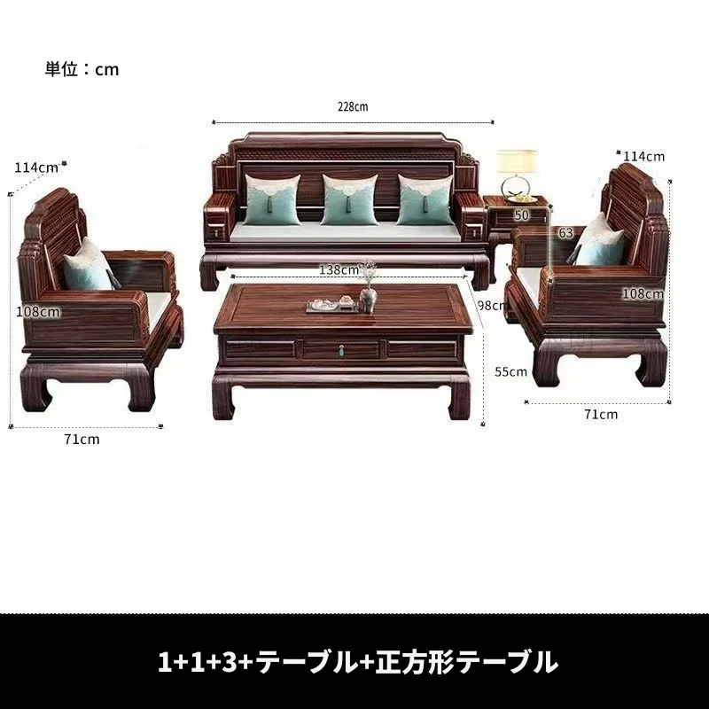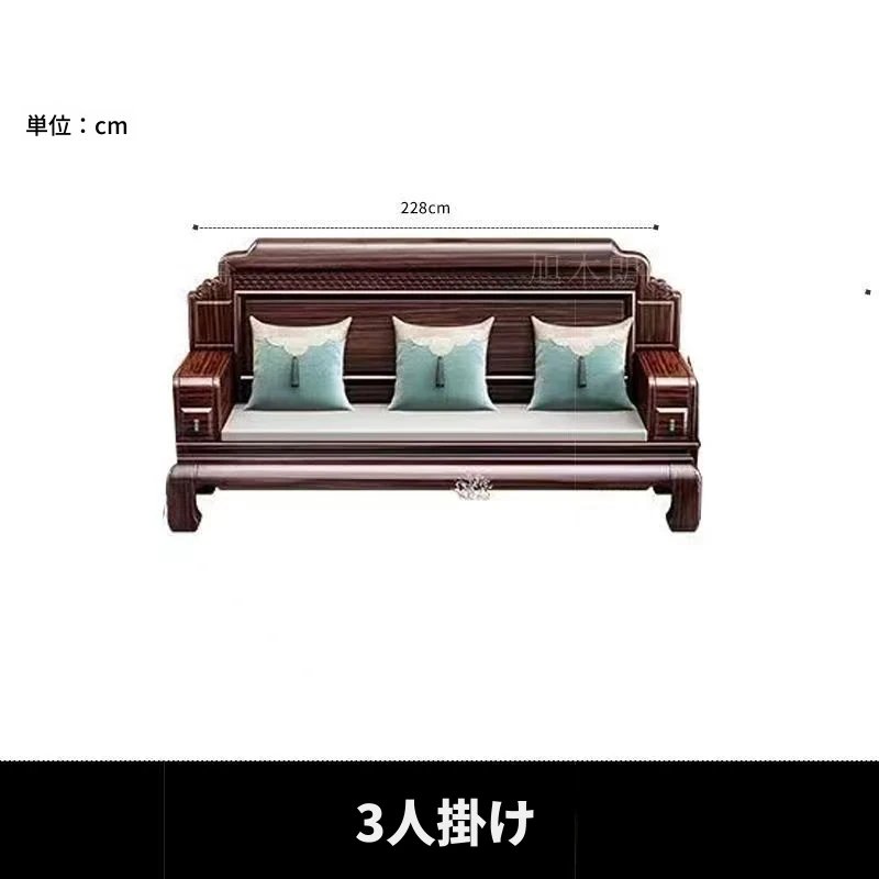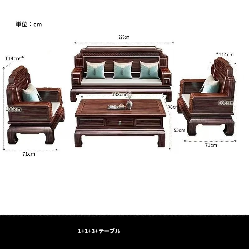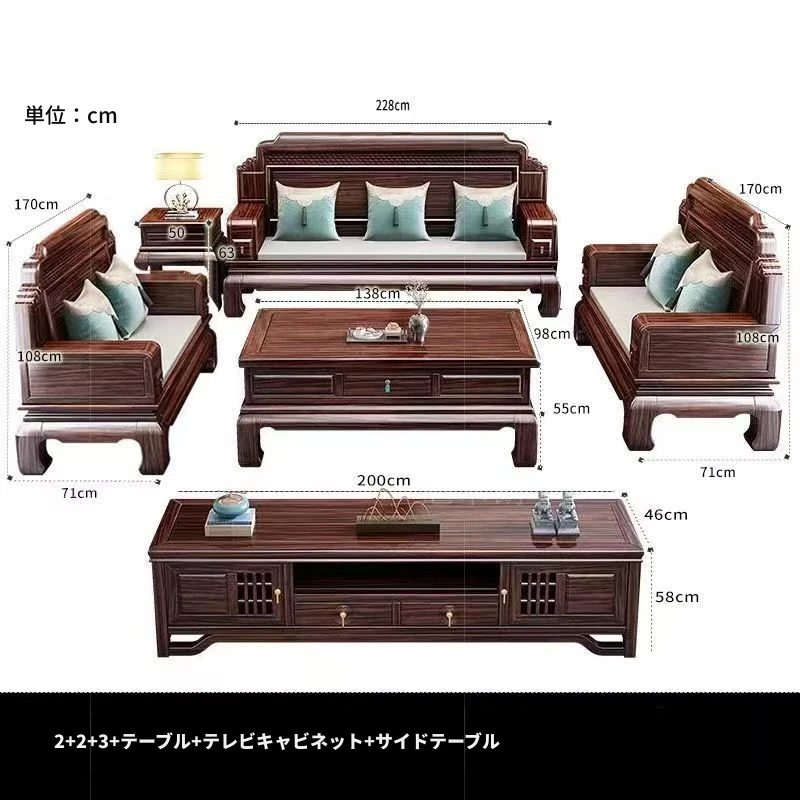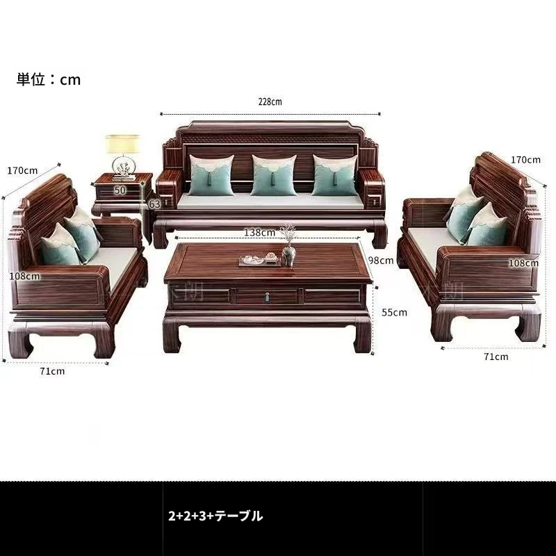 新中式全実木ウッドソファセット - ウッディなデザインで、冬夏両用!別荘やリビングにぴったりの現代的なサイズ展開、あなたの空間を優雅に演出します。