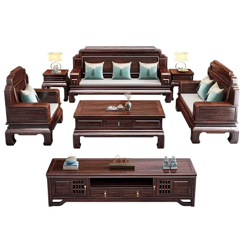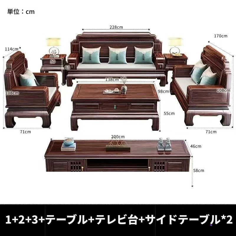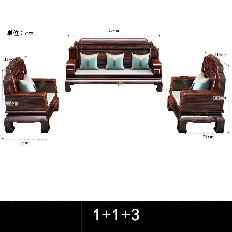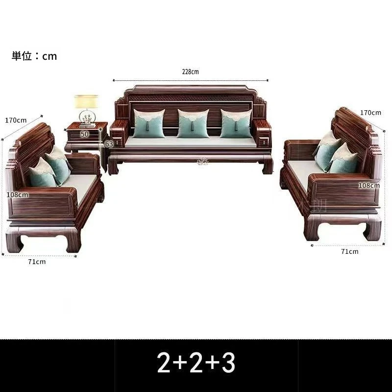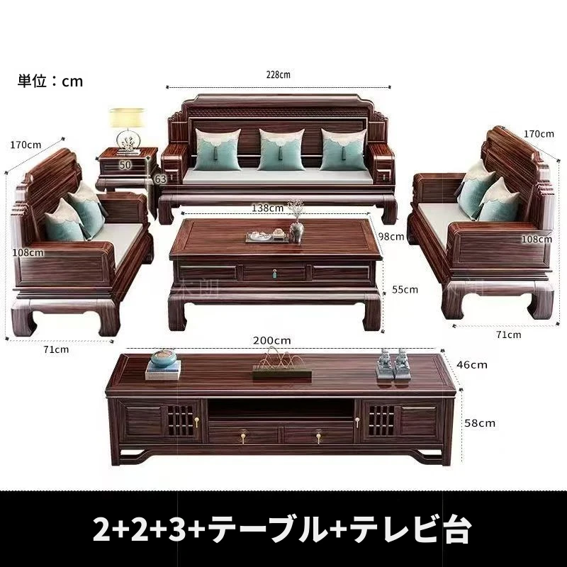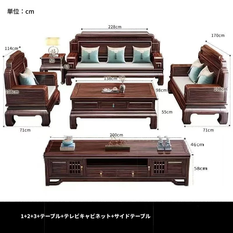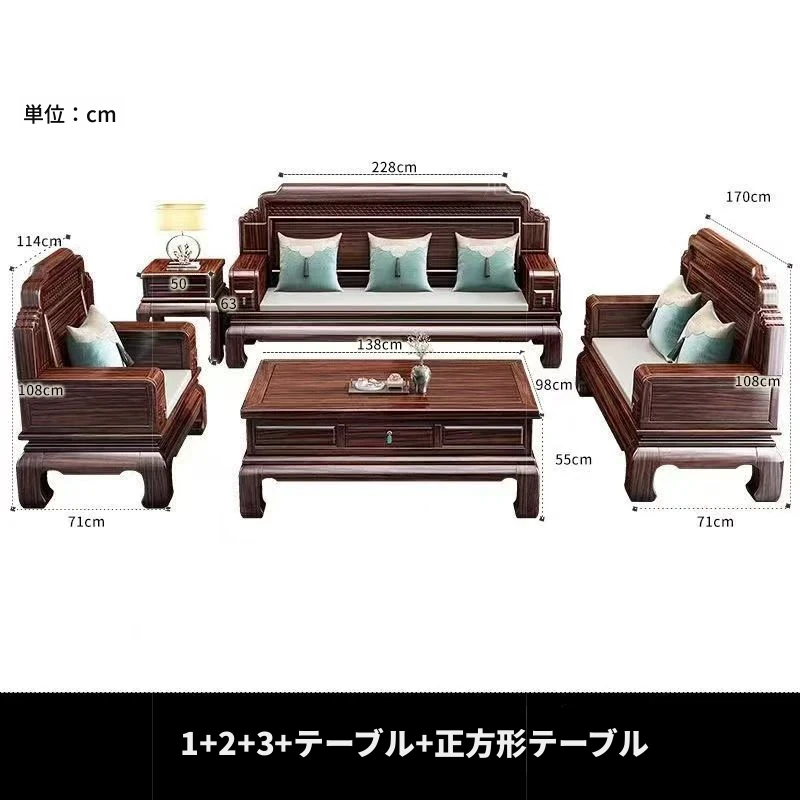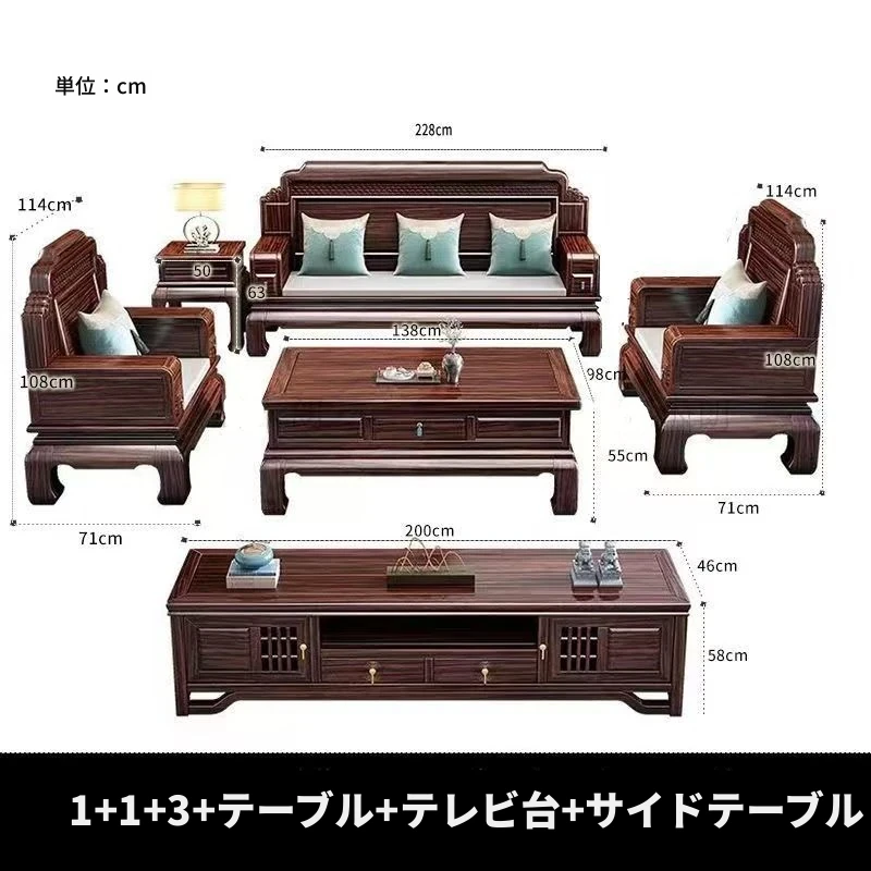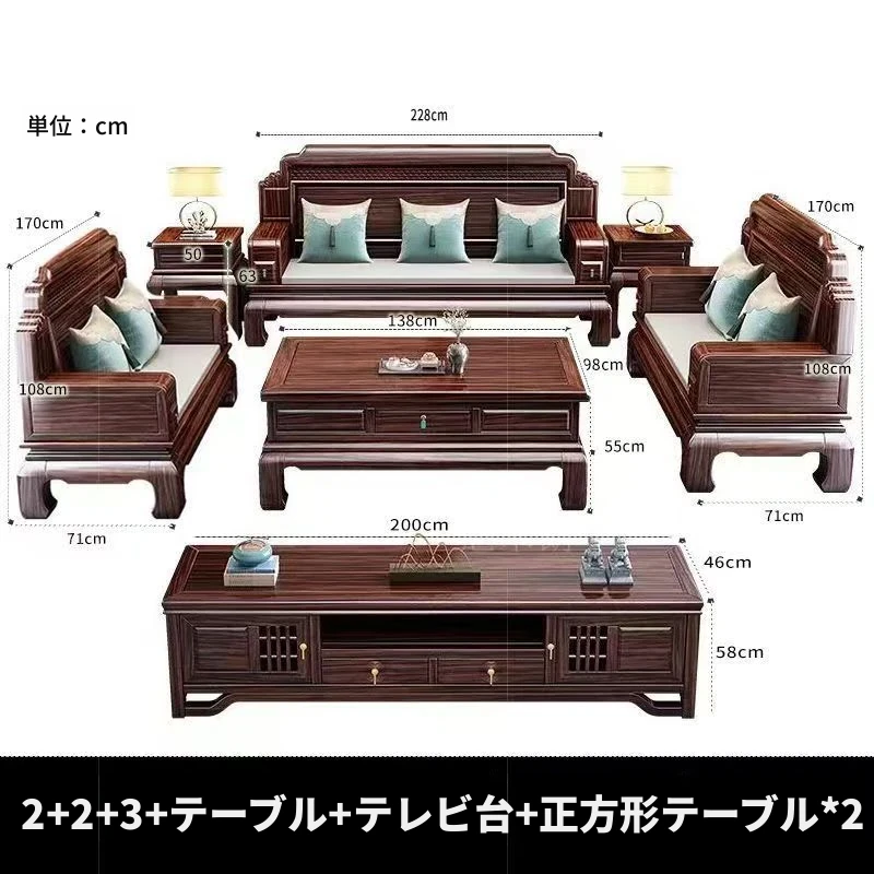 新中式全実木ウッドソファセット - ウッディなデザインで、冬夏両用!別荘やリビングにぴったりの現代的なサイズ展開、あなたの空間を優雅に演出します。