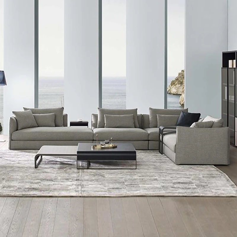 イタリアングレー本革ソファ 小型リビング向け 高級革使用 モダンシンプルなデザイン エレガントなライトラグジュアリーソファセットで、あなたの空間をスタイリッシュに演出します!