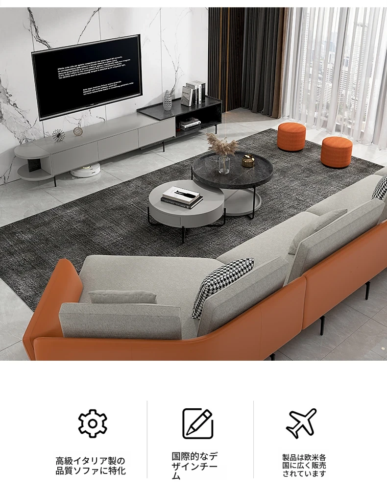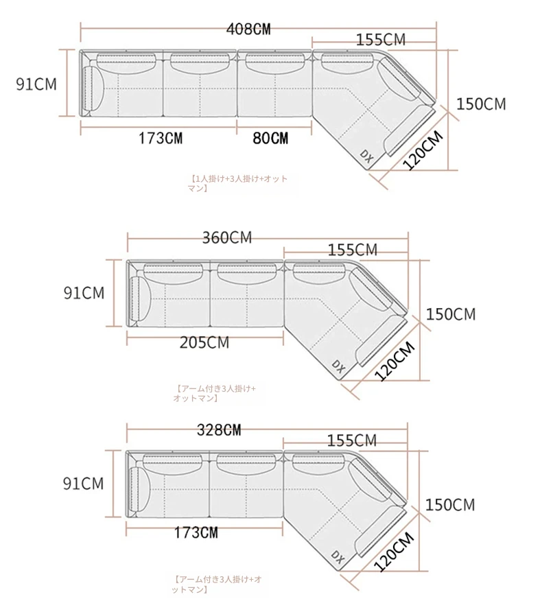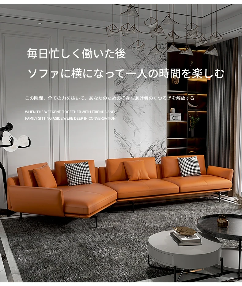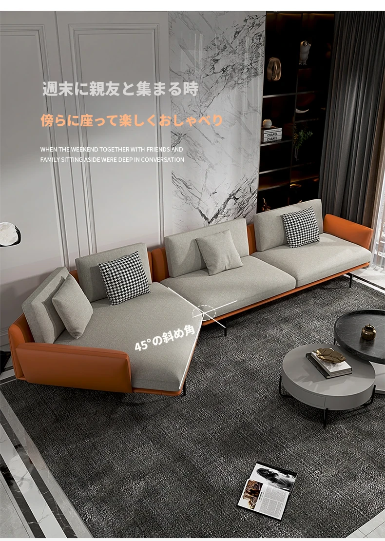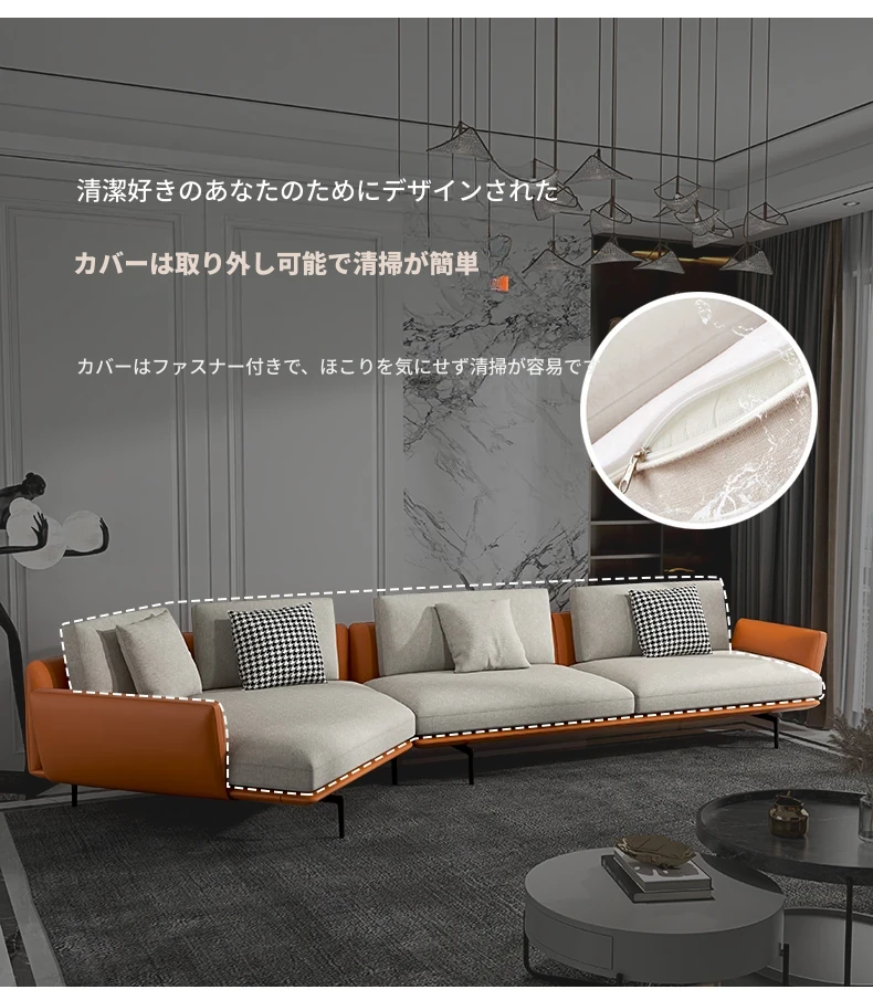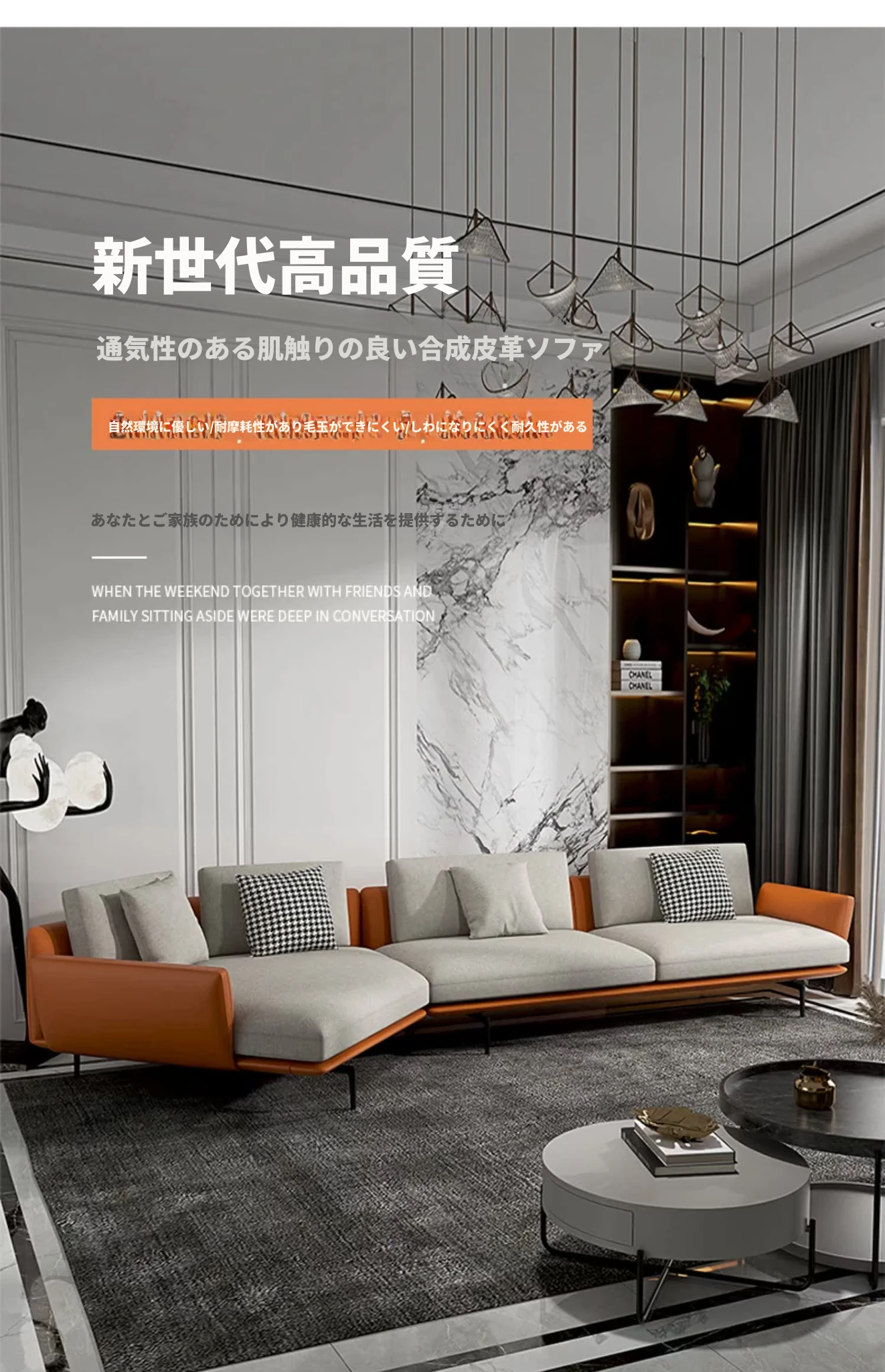 4.08メートル1+3+左カウチ(合成皮革)洗える