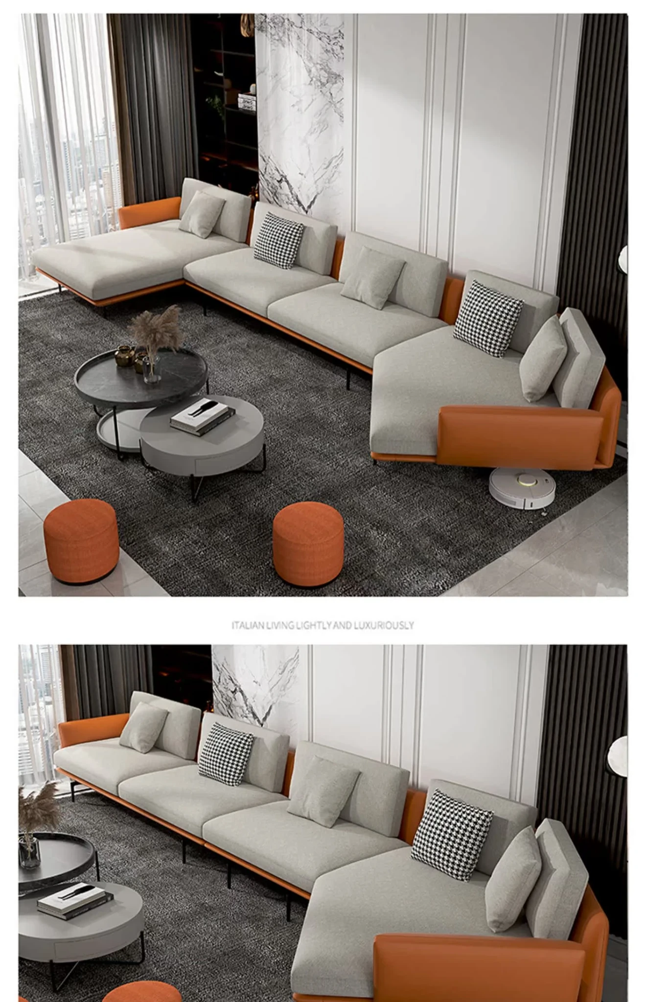 4.08メートル1+3+アームレストなし左カウチ(合成皮革)洗える