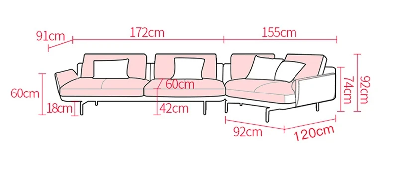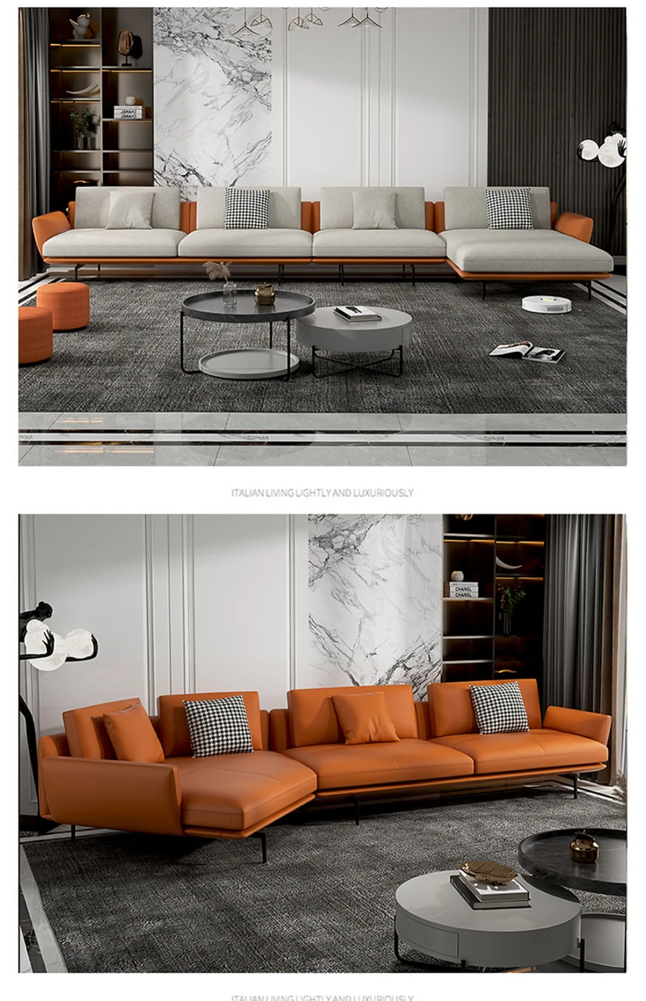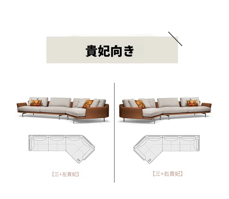 4.08メートル1+3+アームレストなし右カウチ(合成皮革)洗える