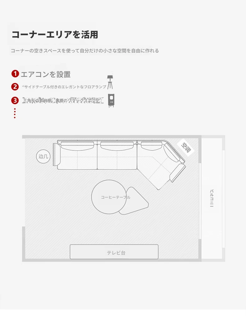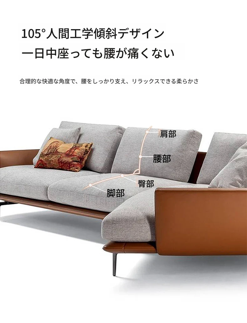 3.6メートル3+アームレストなし左カウチ(合成皮革)洗える