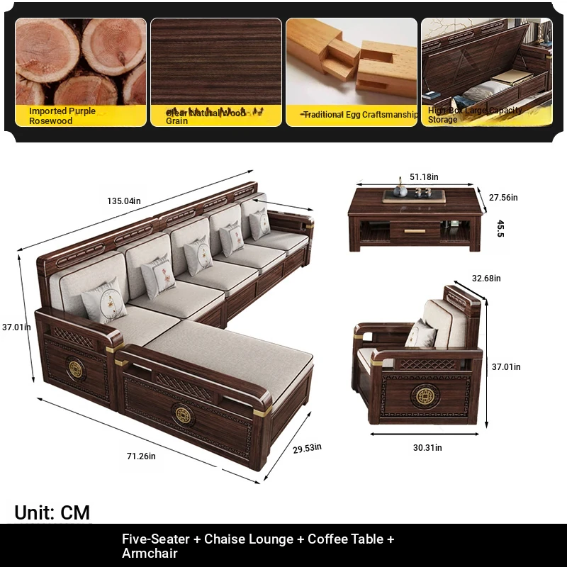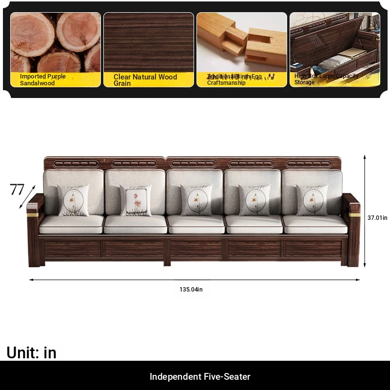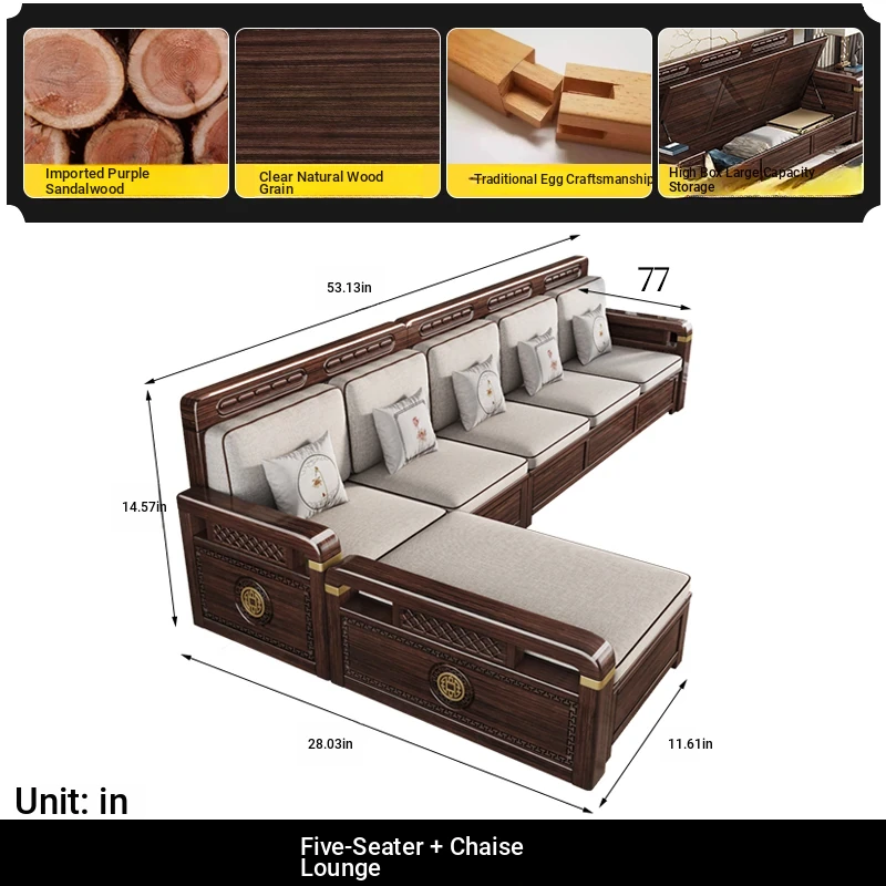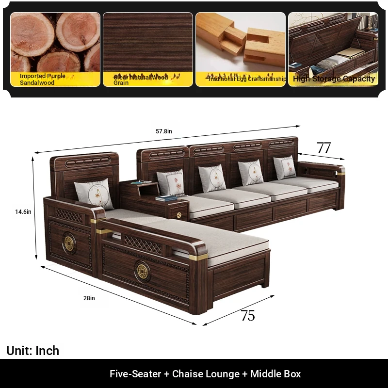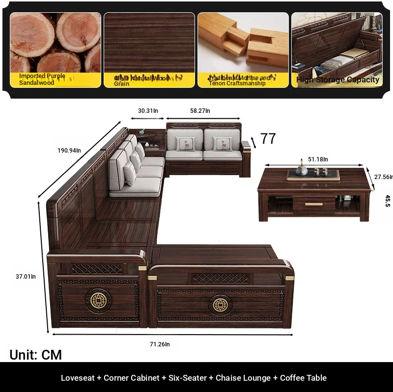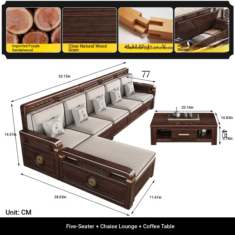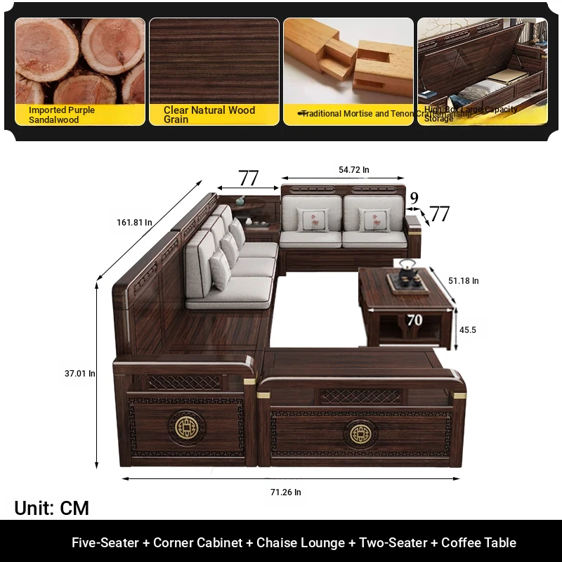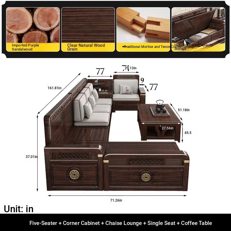 [Zijin Sandalwood] Five + Imperial Couch + Tea Table + Single