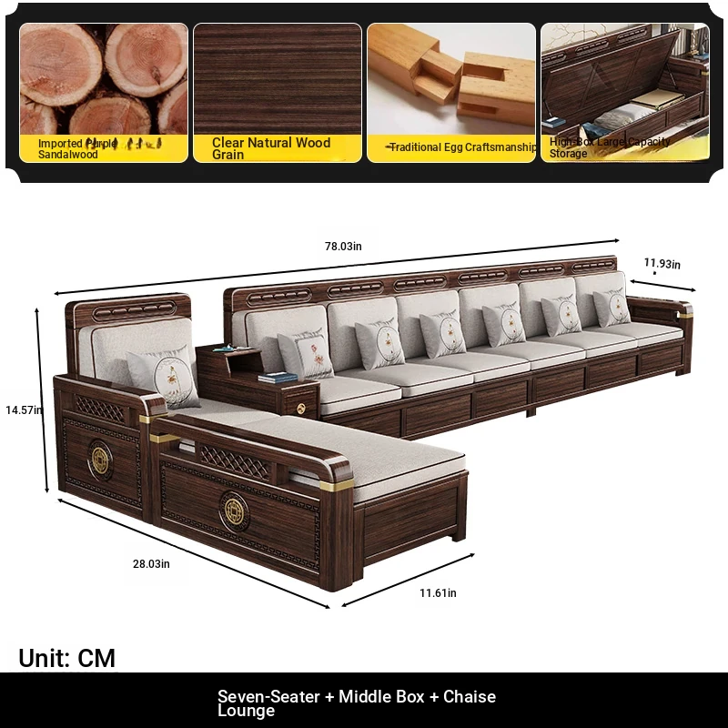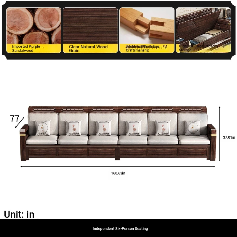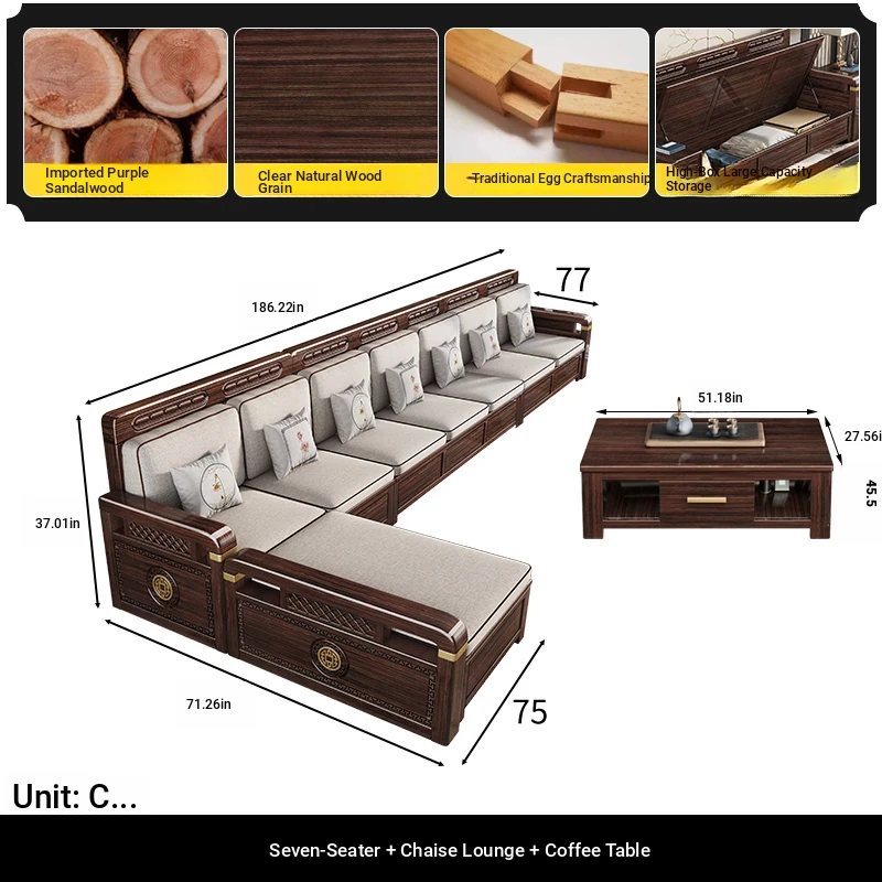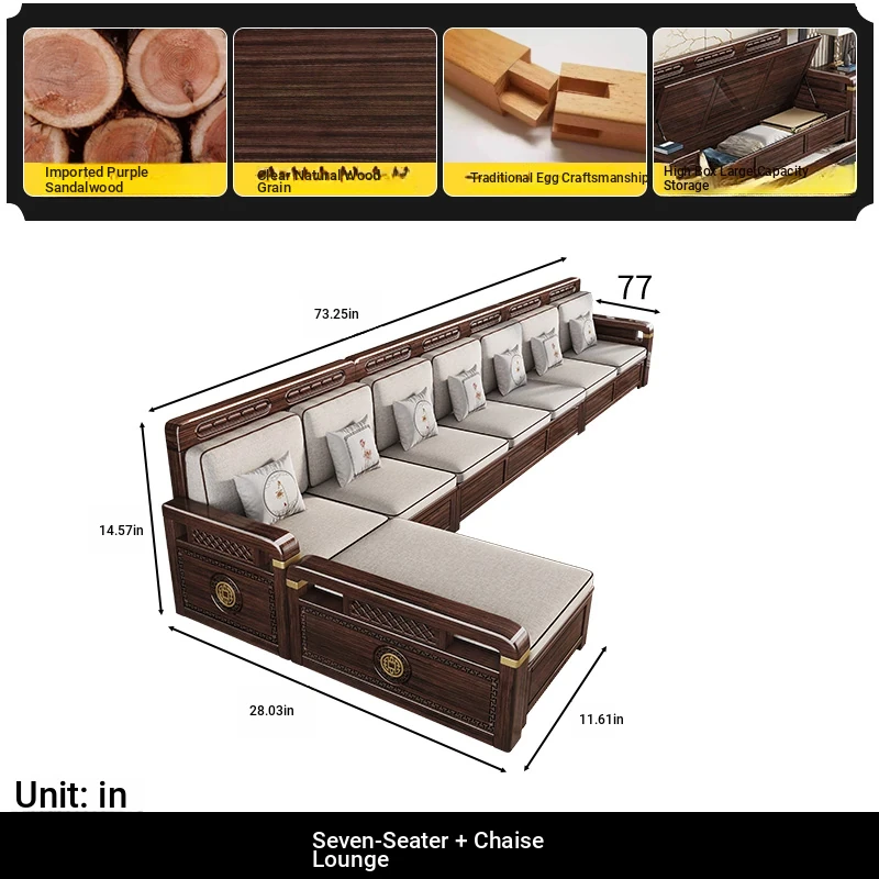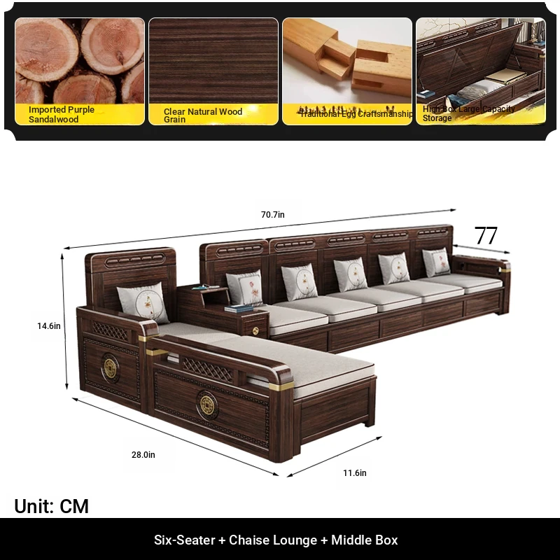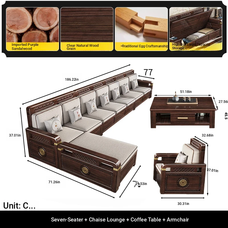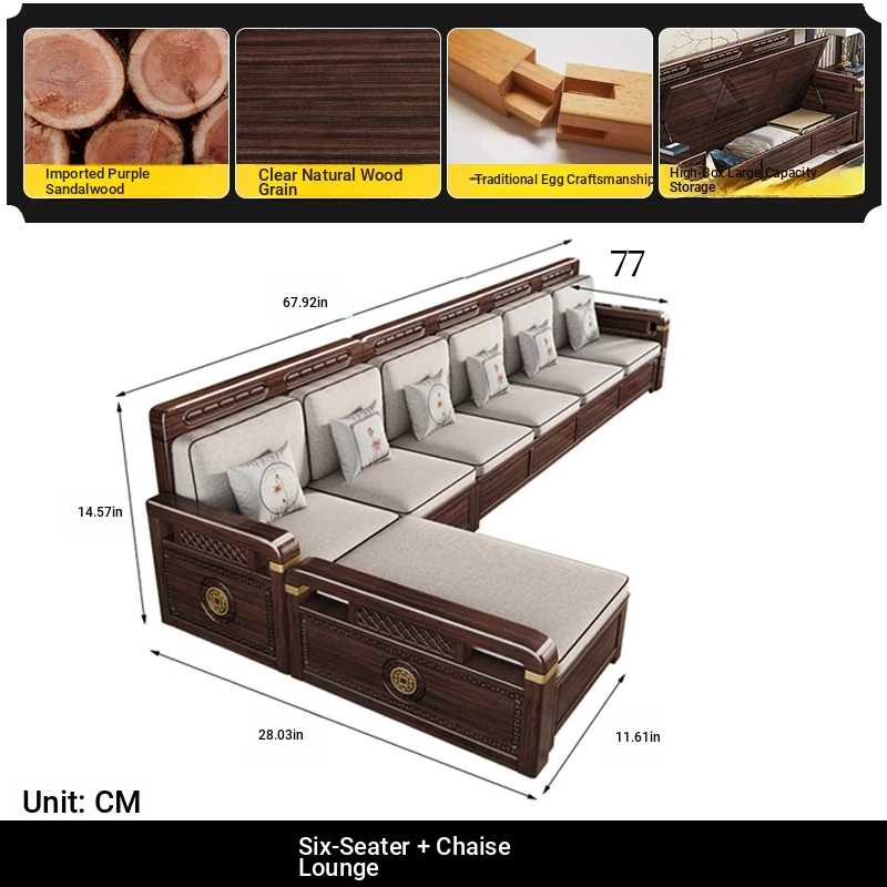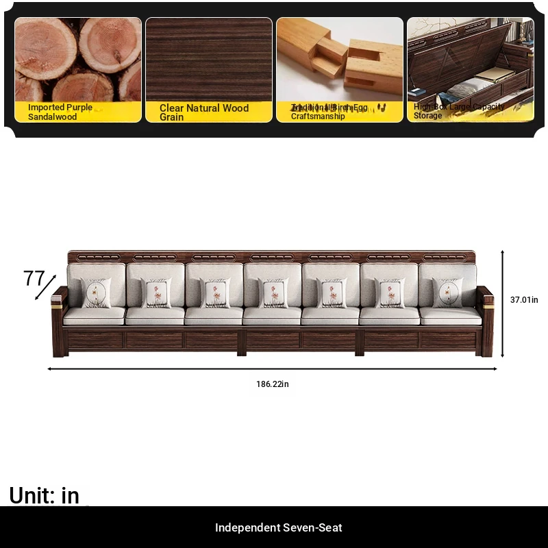 [Zijin Sandalwood] Five + Imperial Couch + Tea Table + Single