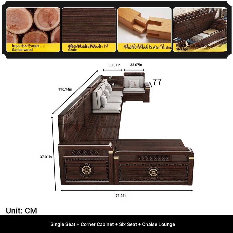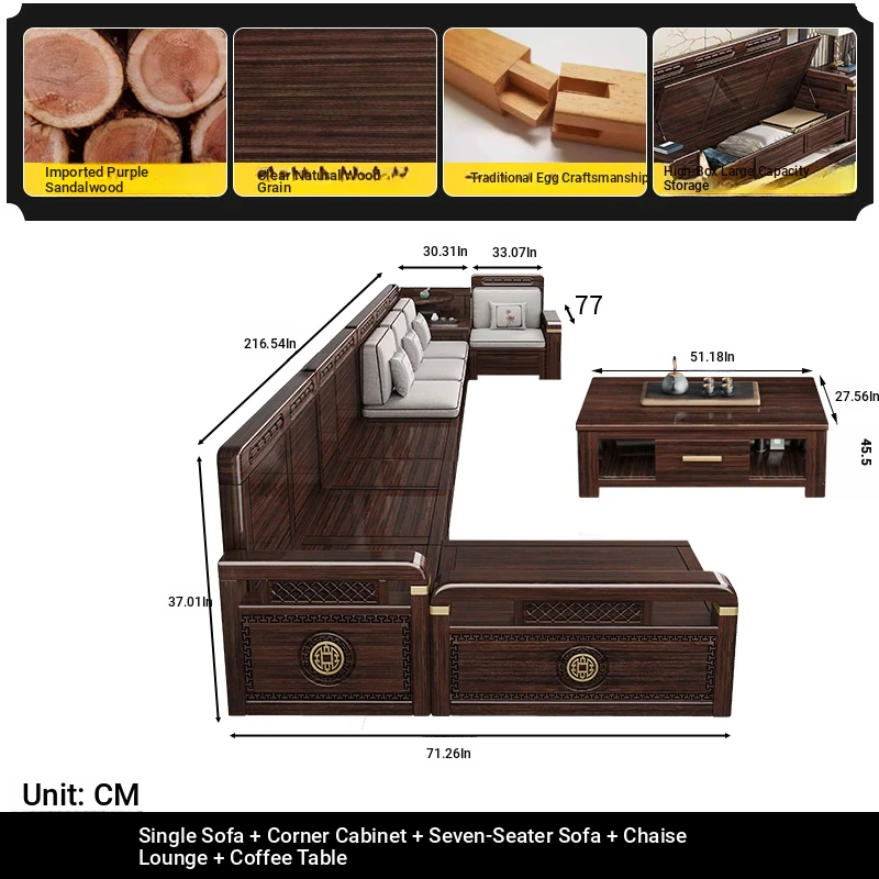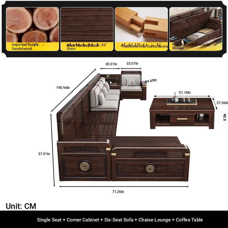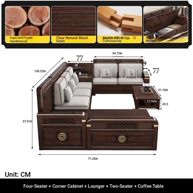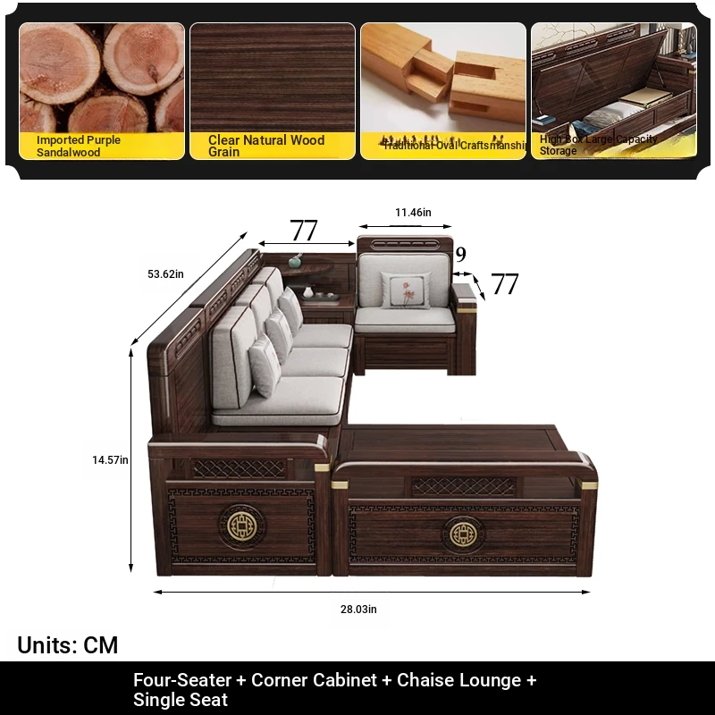 [Zijin Sandalwood] Single + Corner Cabinet + Four + Imperial Couch + Tea Table