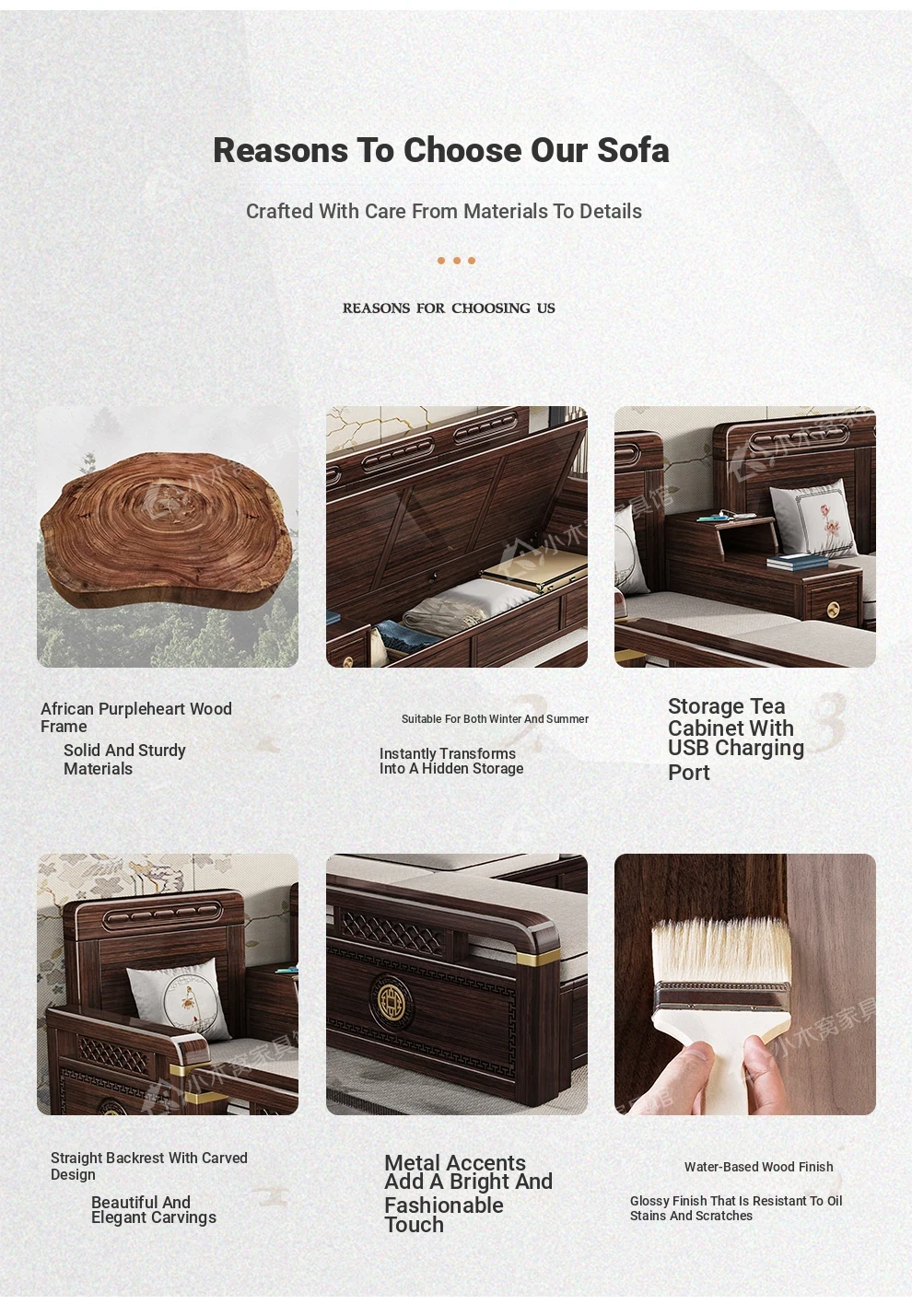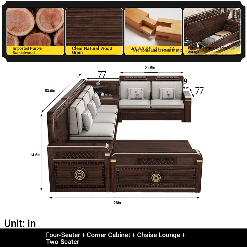 [Zijin Sandalwood] Double + Corner Cabinet + Four + Imperial Couch + Tea Table