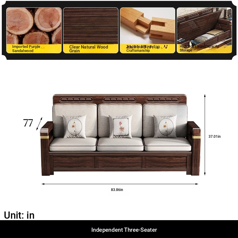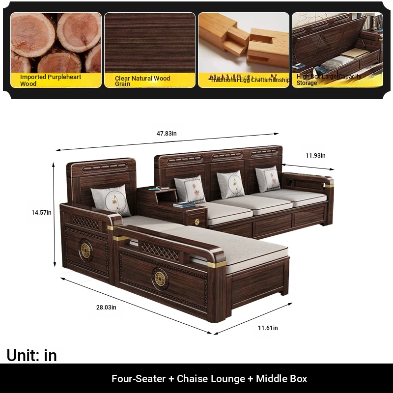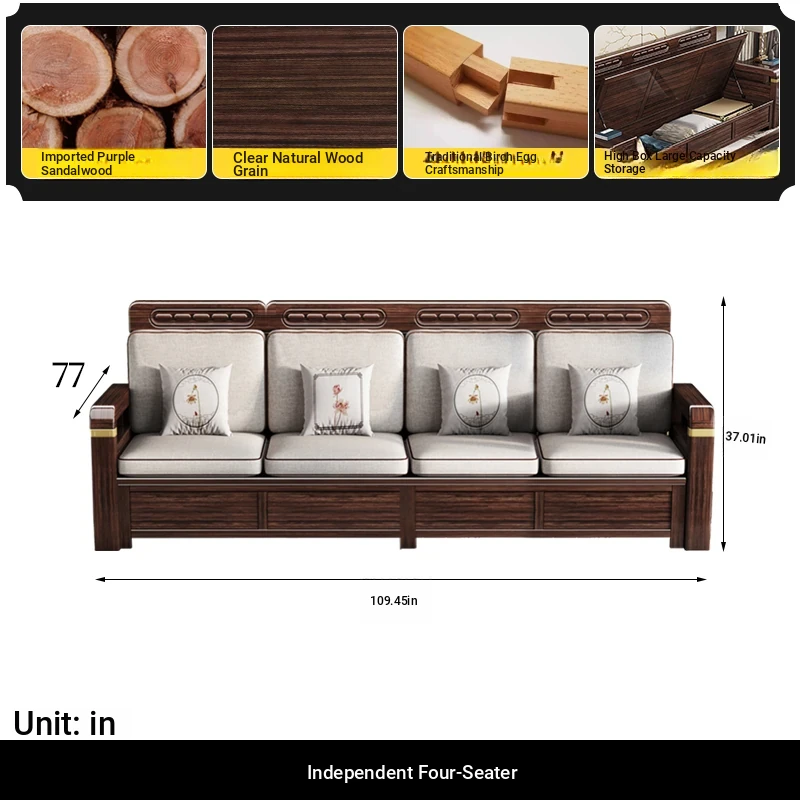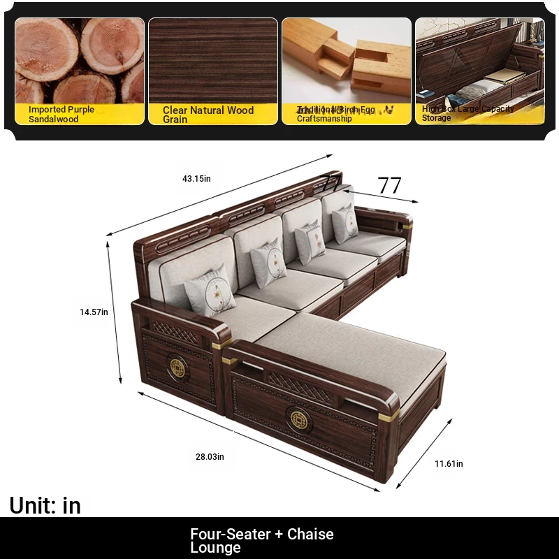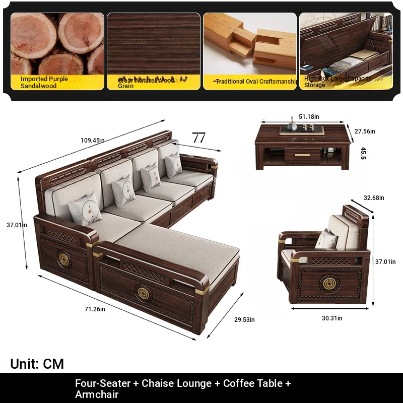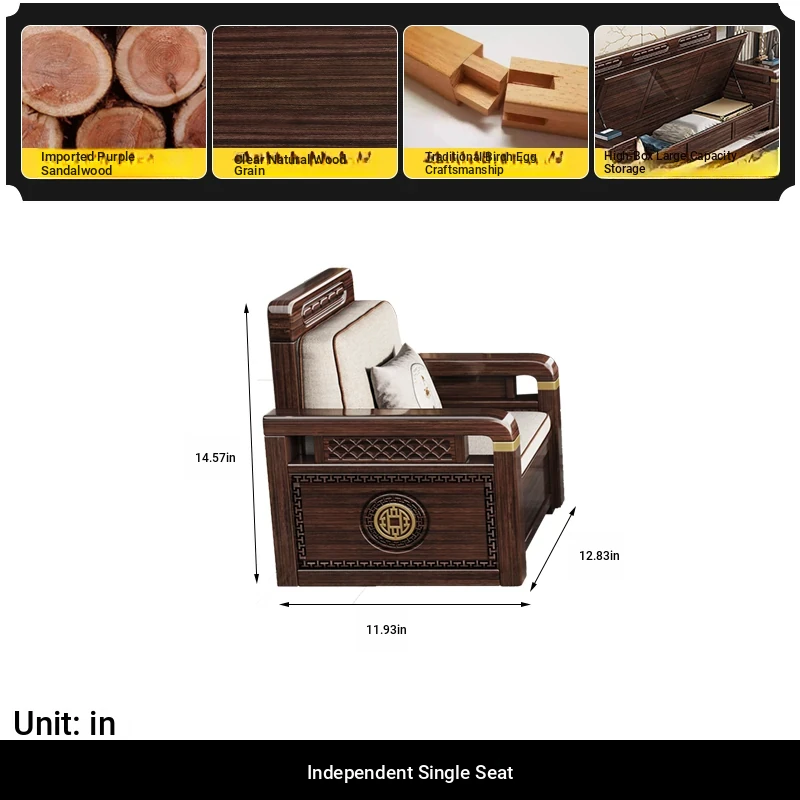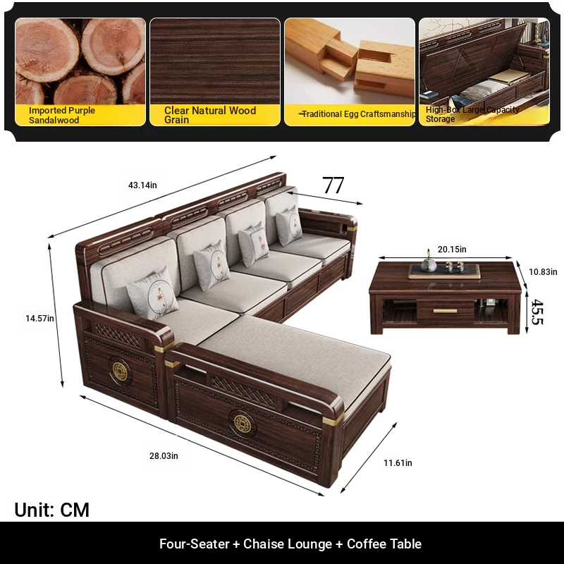 [Zijin Sandalwood] Four + Imperial Couch + Tea Table + Single