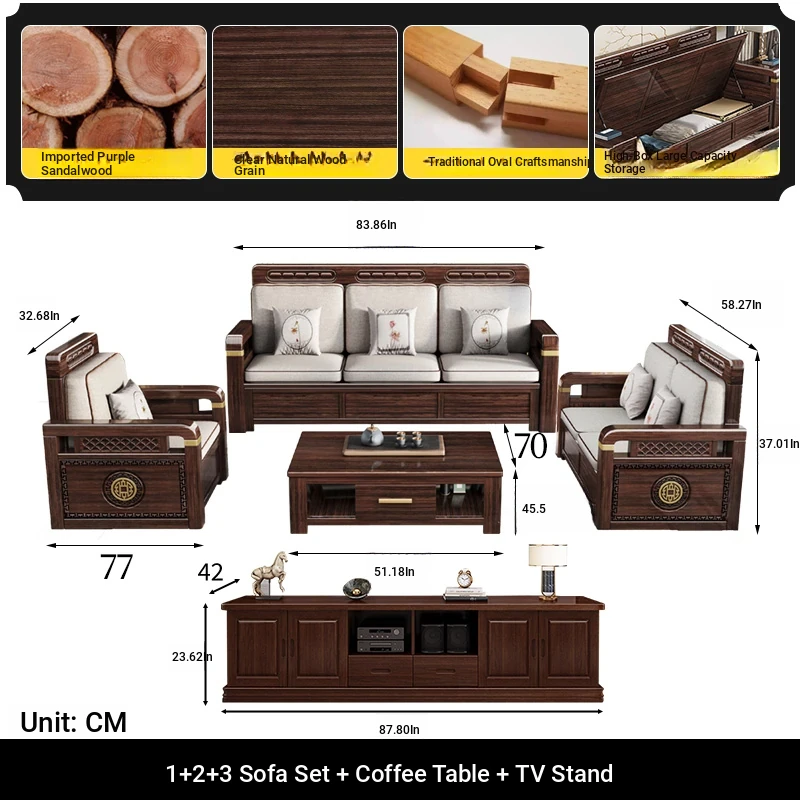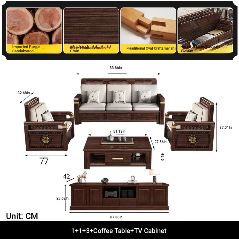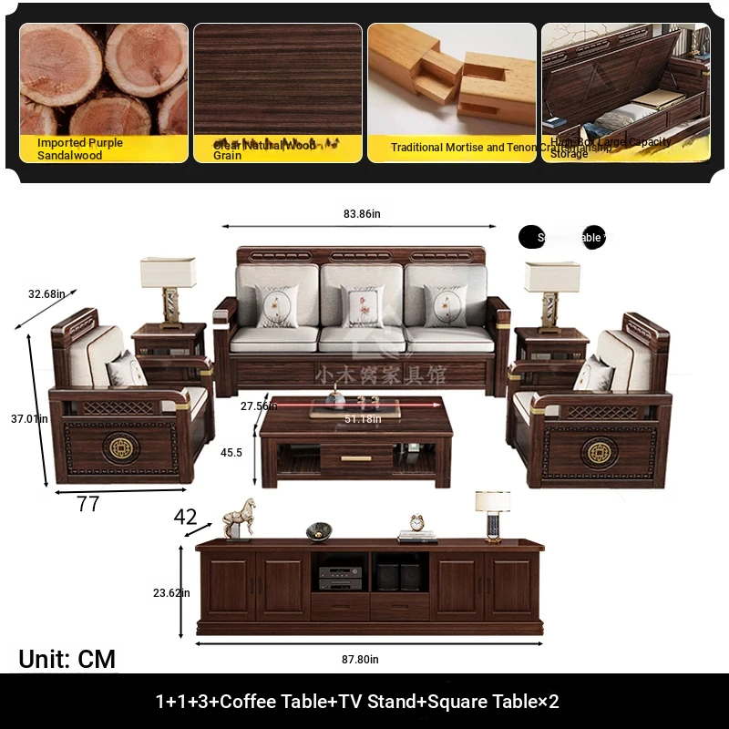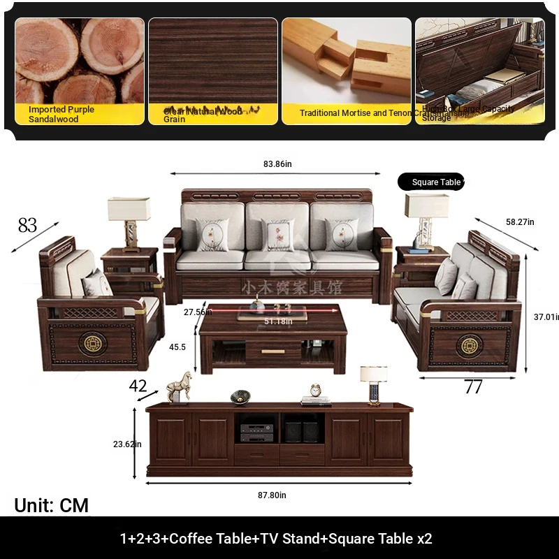 [Zijin Sandalwood] 1+2+3 + Tea Table + TV Cabinet + Square Table * 2
