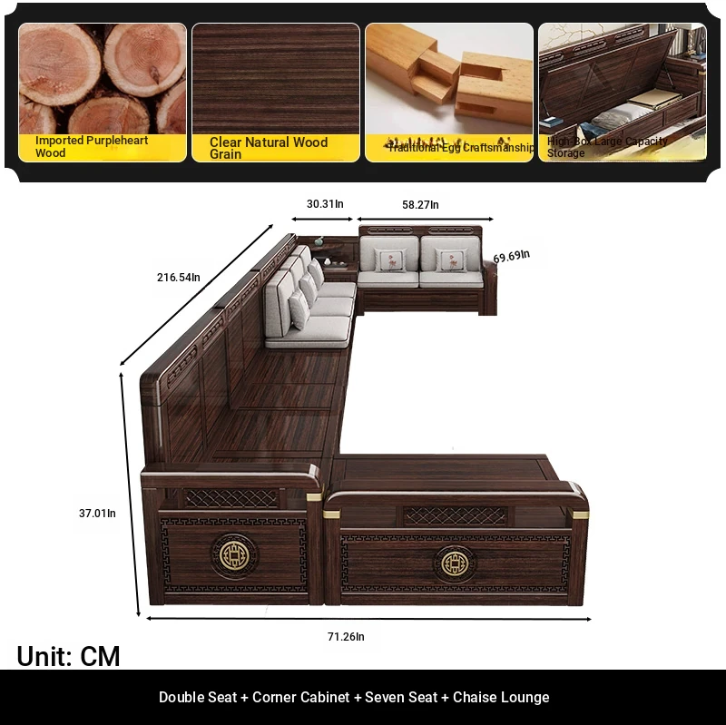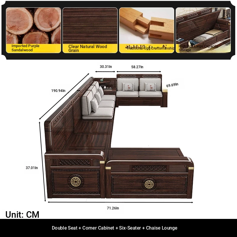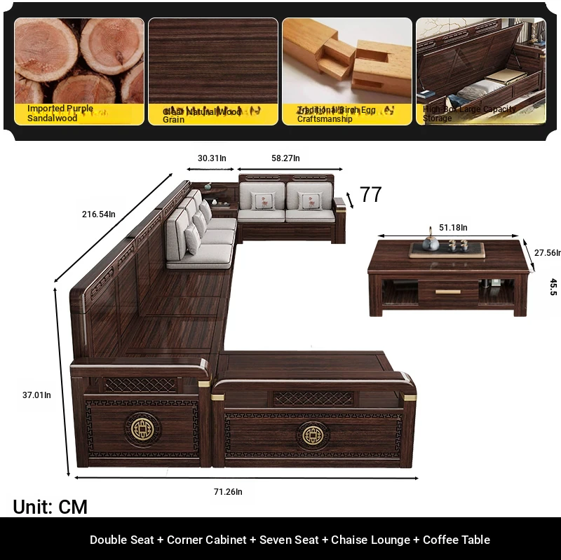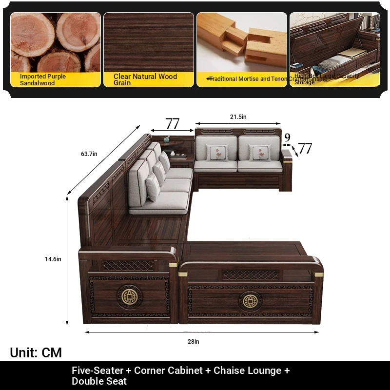 [Zijin Sandalwood] Double + Corner Cabinet + Five + Imperial Couch + Tea Table