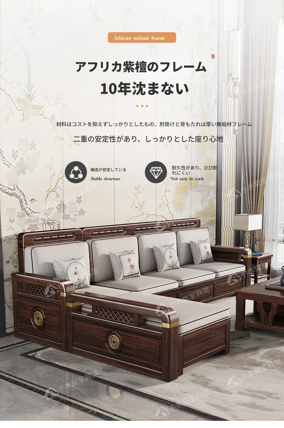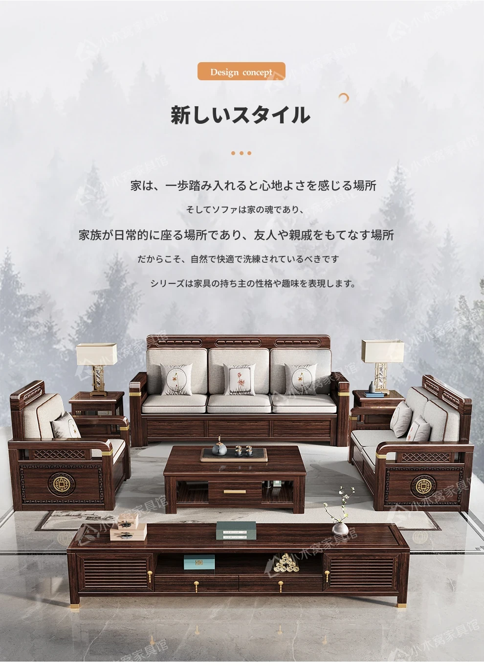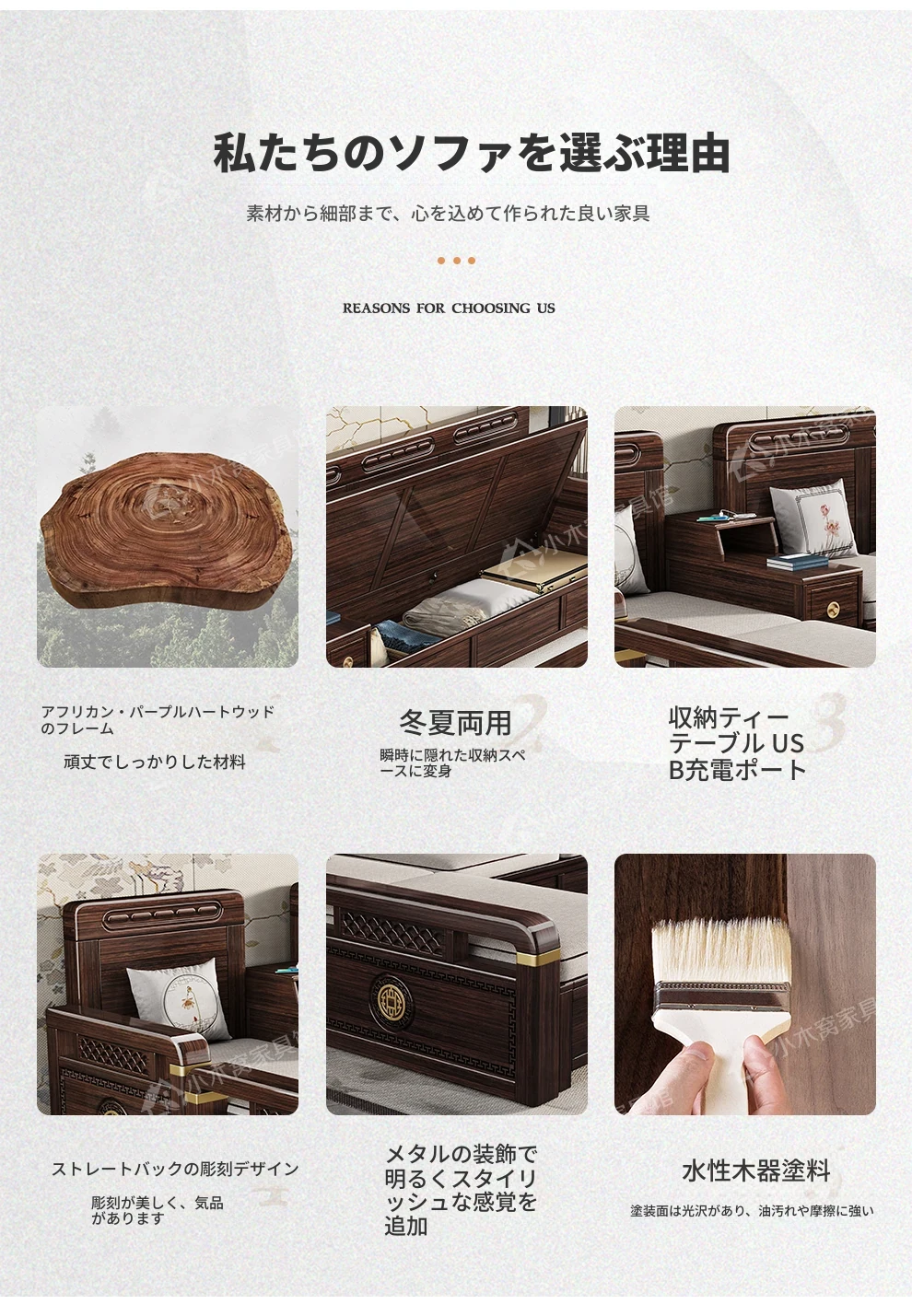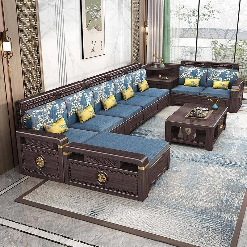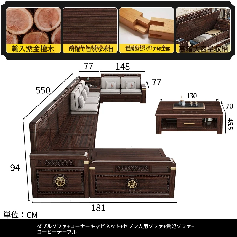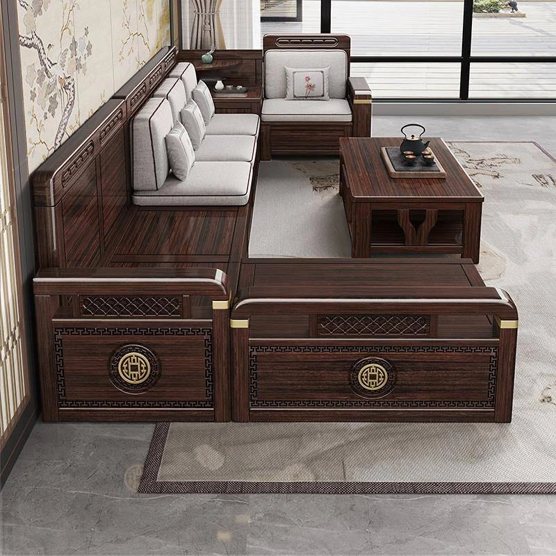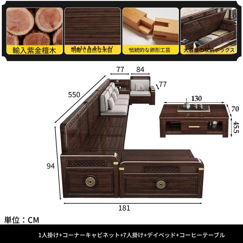 新中式デザインの冬夏兼用、実木製の収納ソファ!シンプルでモダンな小型リビング向けのフルセット家具。おしゃれで機能的な空間を演出し、快適なひとときを提供します。