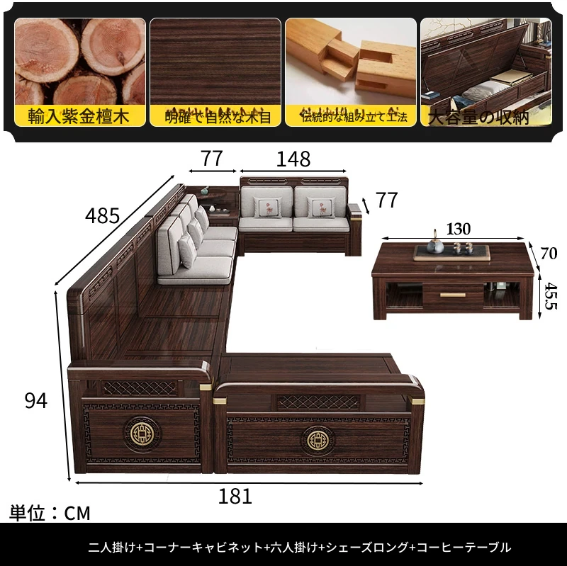 【紫金檀】一人用+角棚+四人用+貴妃ソファ
