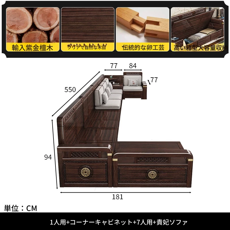 【紫金檀】一人用+角棚+七人用+貴妃ソファ