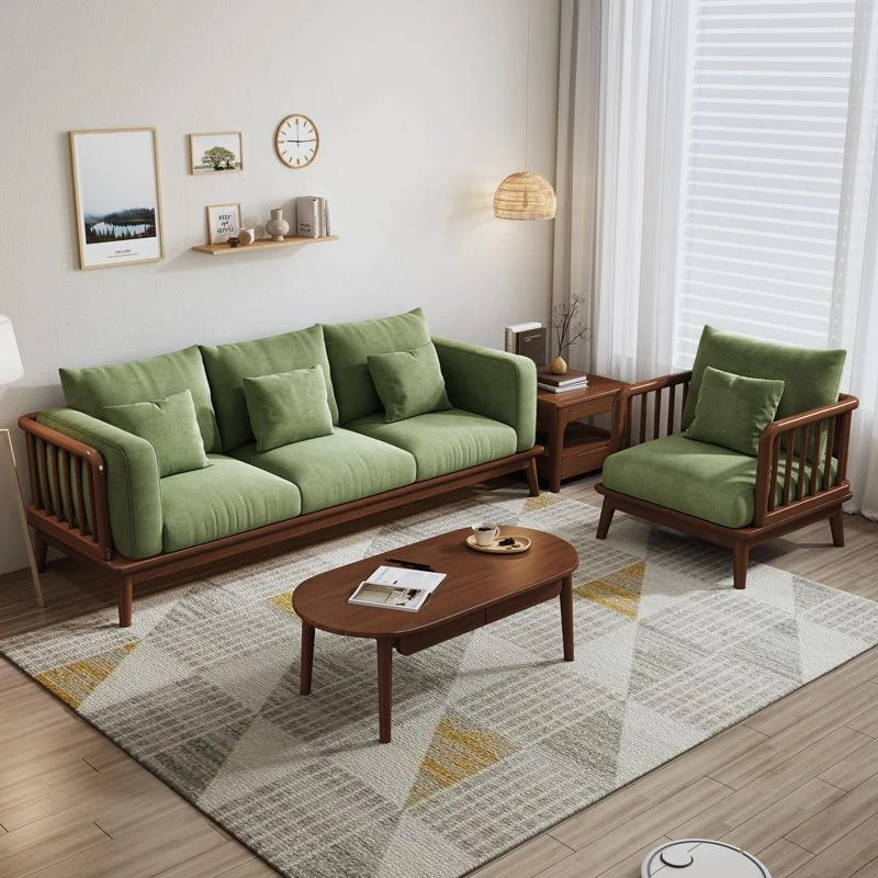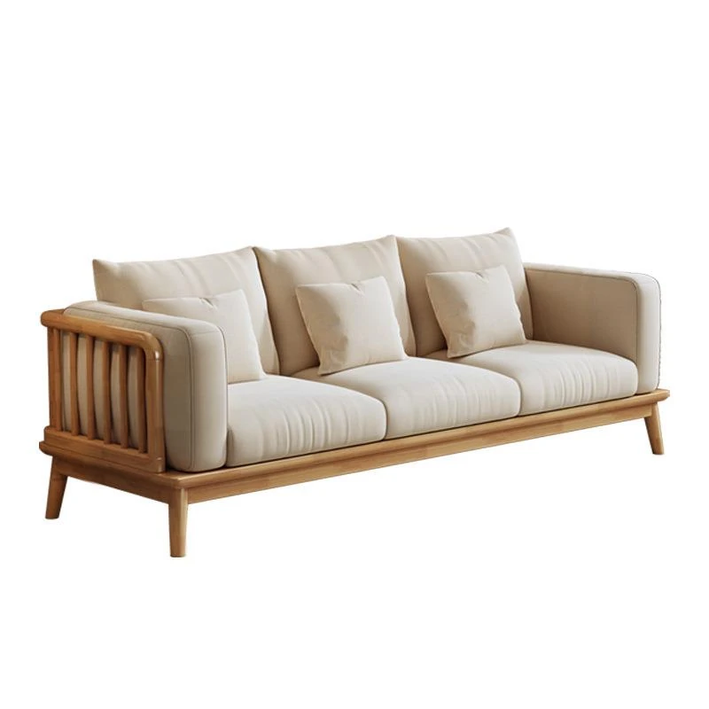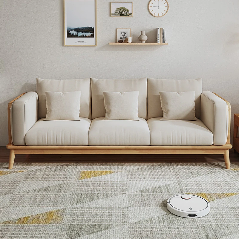 天然木材使用の和風リビングソファ、コンパクトな3人掛けセット!クリーミーな色合いでモダン&シンプルなデザイン、狭いお部屋にもぴったりのスタイリッシュなアイテムです。