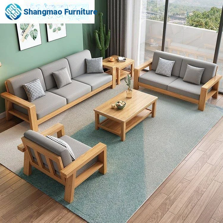 Modern Minimalist Solid Wood Sofa Set for Small Spaces - Stylish Chinese-Style Corner Sofa for Living Room, Model 809, Perfect for Home Use