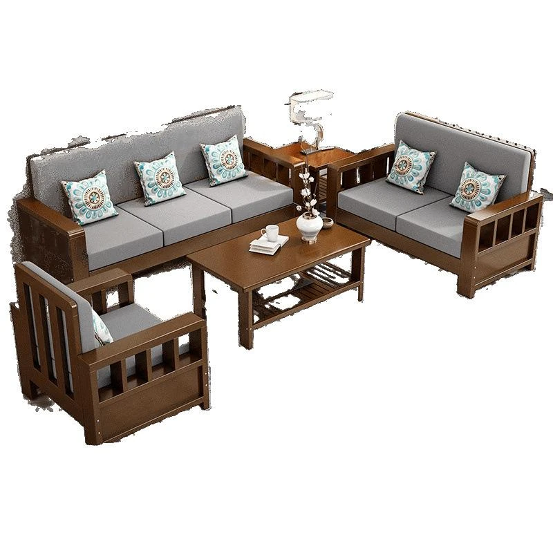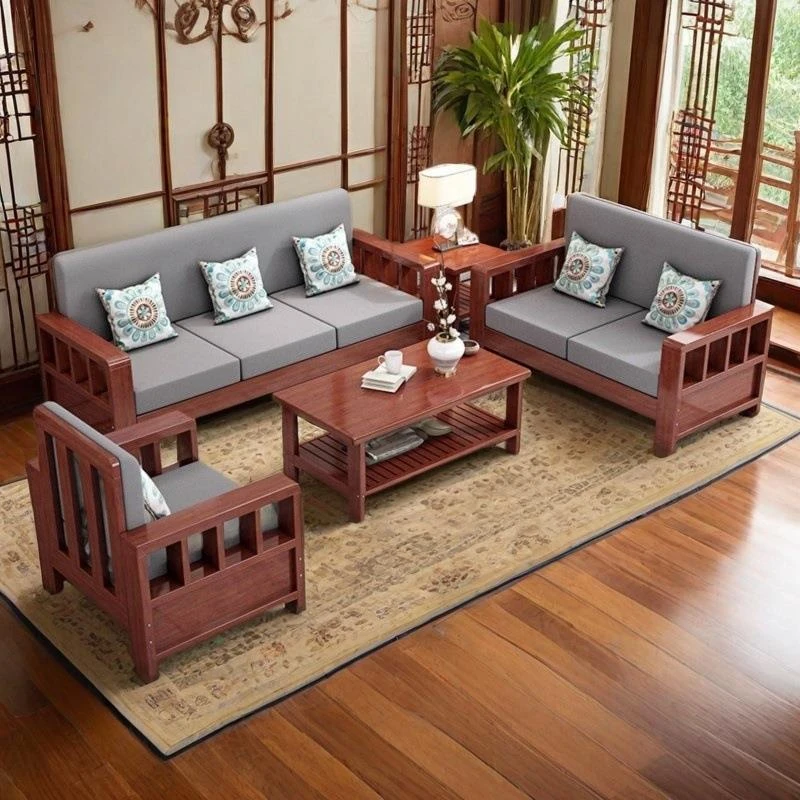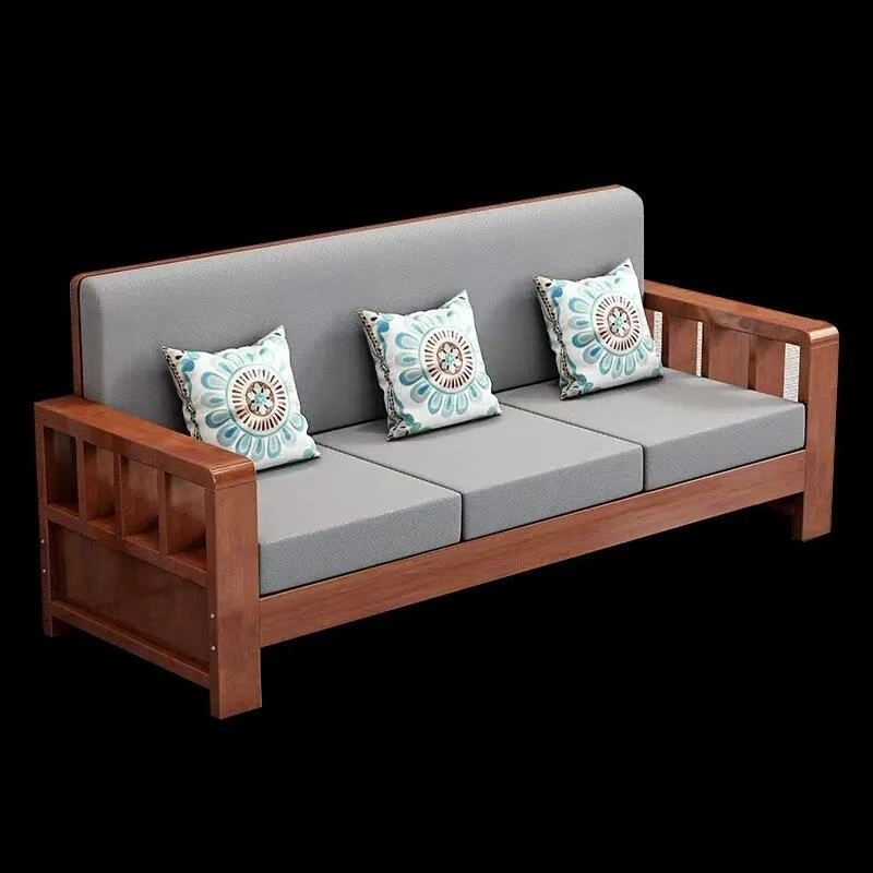 新中式実木ソファセット|冬夏兼用・コンパクトな小型住宅向け・モダンでシンプルな経済的3人掛けソファ|居心地抜群でスタイリッシュな空間を演出します!