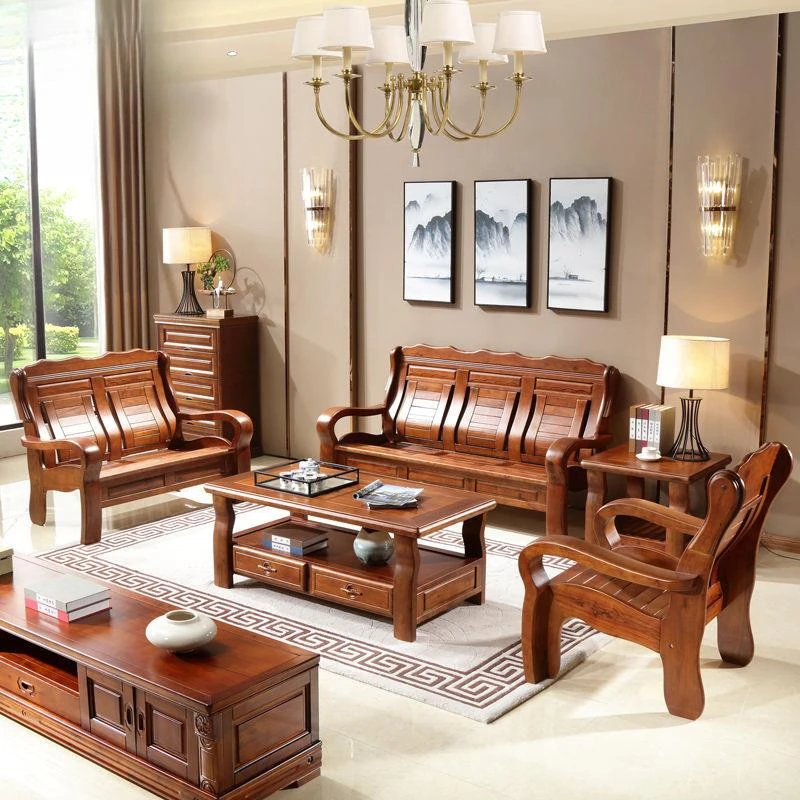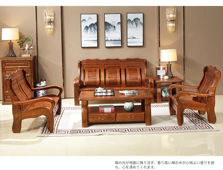 全実木製の香樟木ソファ | モダンな中小型住宅に最適、シニア向けの快適なリビングルーム家具 | 高品質のソファセット製造販売