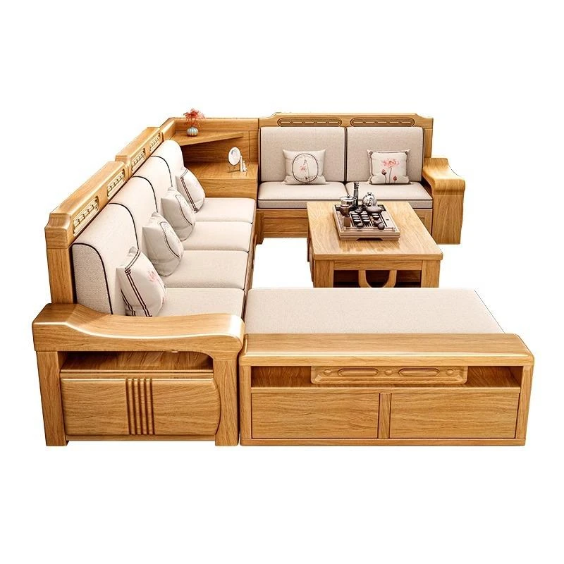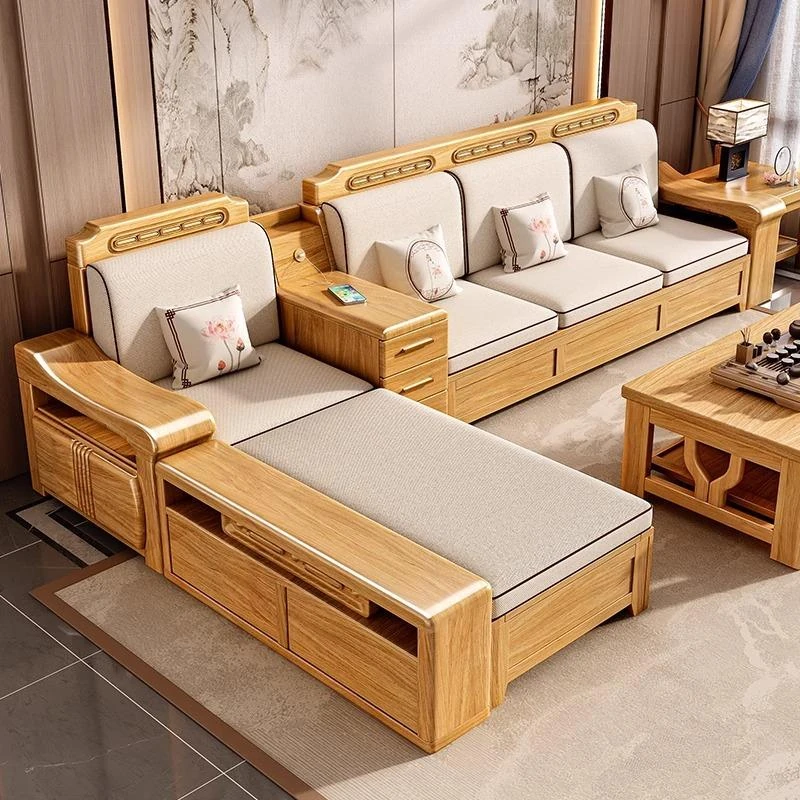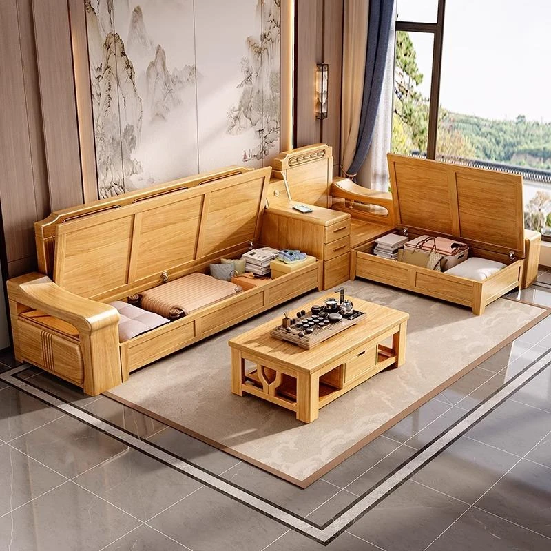 Modern Solid Wood Sofa - Versatile Corner Storage Sofa for Small Spaces, Ideal for All Seasons, Perfect for Contemporary Chinese Living Rooms