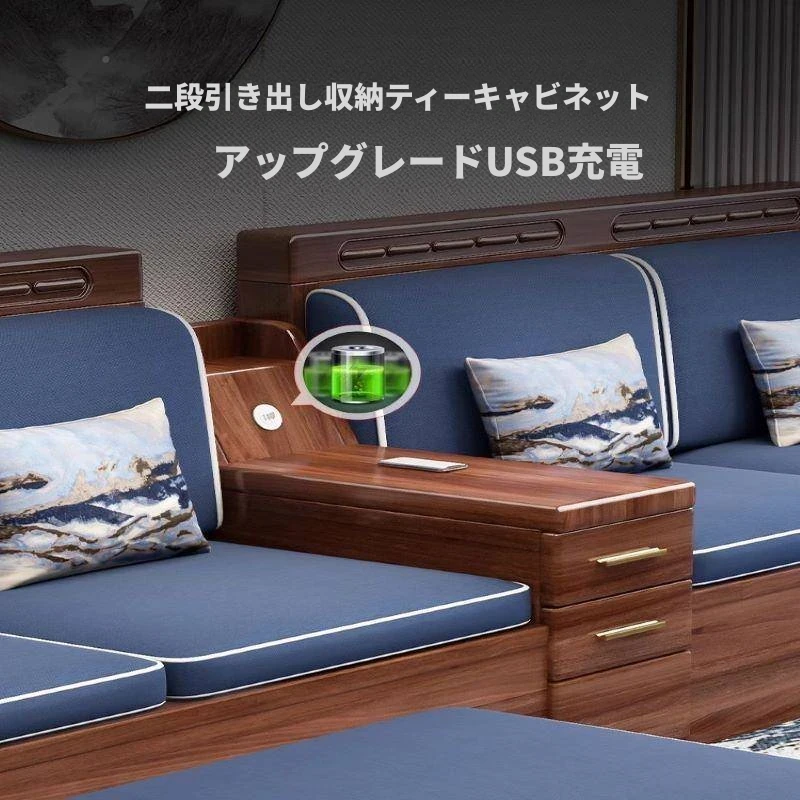 現代中式全無垢材ソファ&テーブルセット - ビジネスミーティングや家庭用リビングに最適!スタイリッシュで快適なデザイン、上質な素材で贅沢感を演出します。