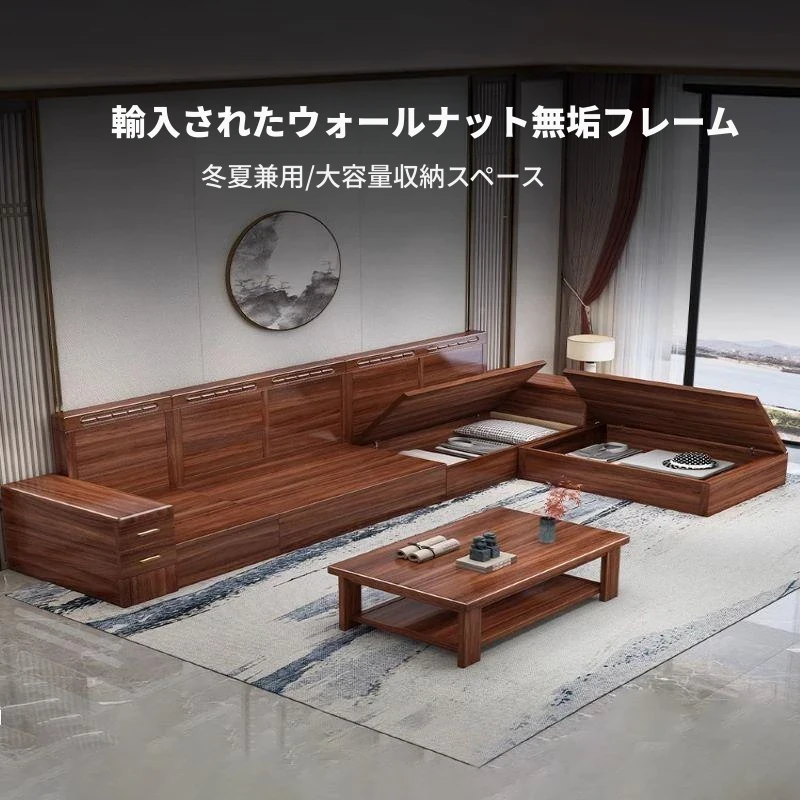 新中式桃木ソファセット - 冬夏兼用、収納機能付き、コンパクトなL字型デザインで、大・小の部屋に最適!おしゃれで快適な空間を演出します。