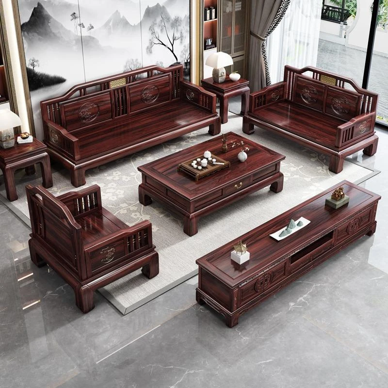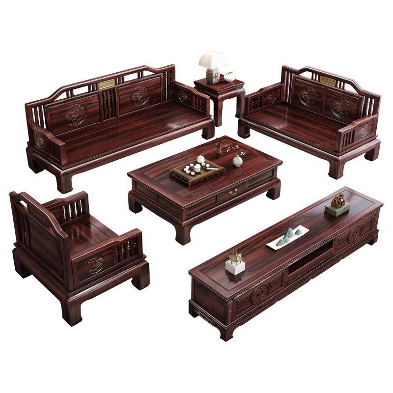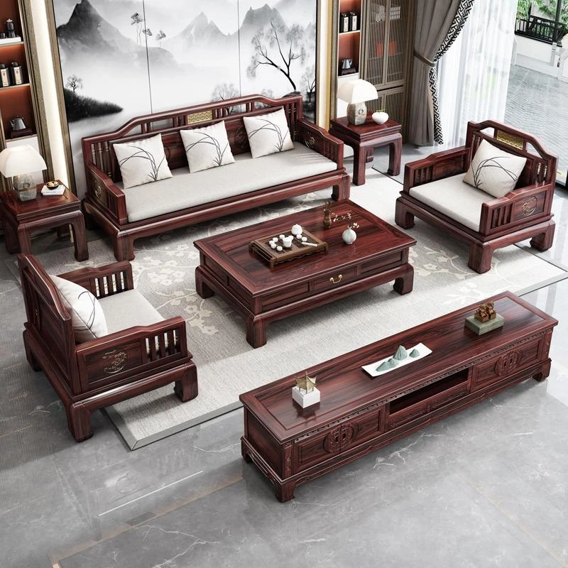 新中式実木ソファ123組合 花梨木リビング Zen風古典紅木ソファ 冬夏対応 工場直供でお得!