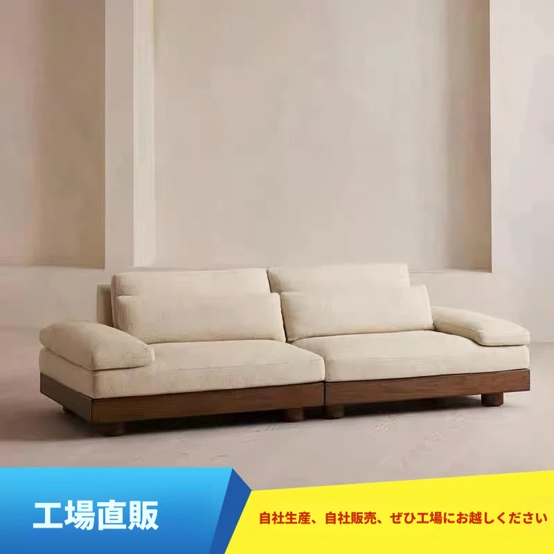 ブラックウォールナット色の北欧スタイルの無垢材ソファ|シンプルでモダンな小型リビング向け|レトロでミニマルなモジュラーソファ|民宿にもぴったり!