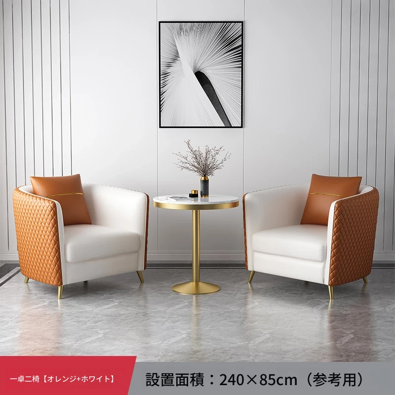 北欧スタイルのラグジュアリーな1人掛けレザーソファ!美容院やサロンに最適なリラックスチェア。おしゃれな応接スペースや商談にぴったりなテーブル&チェアのコンビネーションで、上質なひとときを提供します。