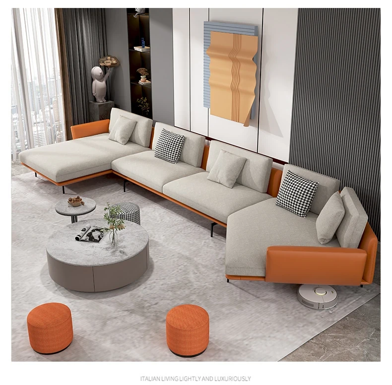Nordic Corner Sofa - Modern Minimalist Designer Fabric Sofa for Small Spaces, Featuring Unique Shape and Cotton-Linen Blend for a Chic Living Room Experience