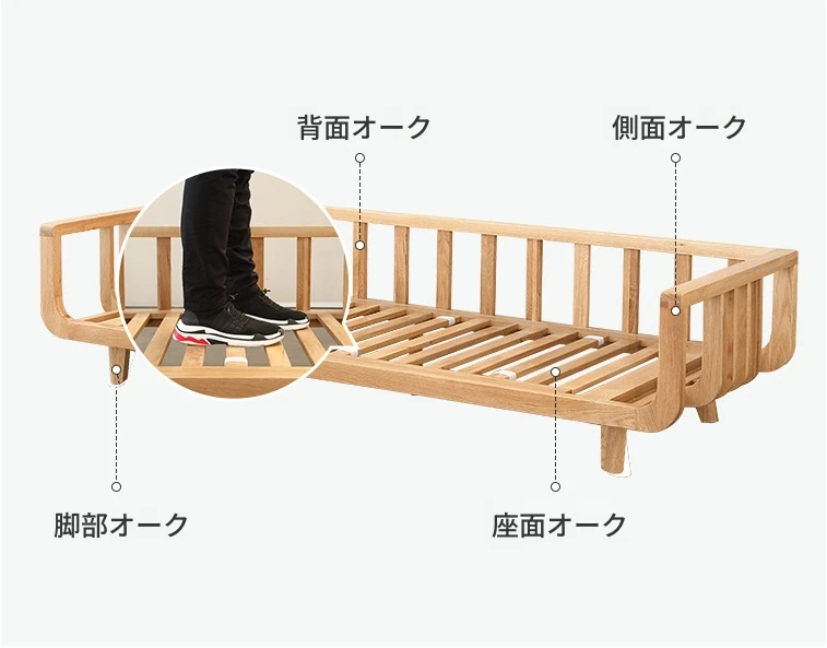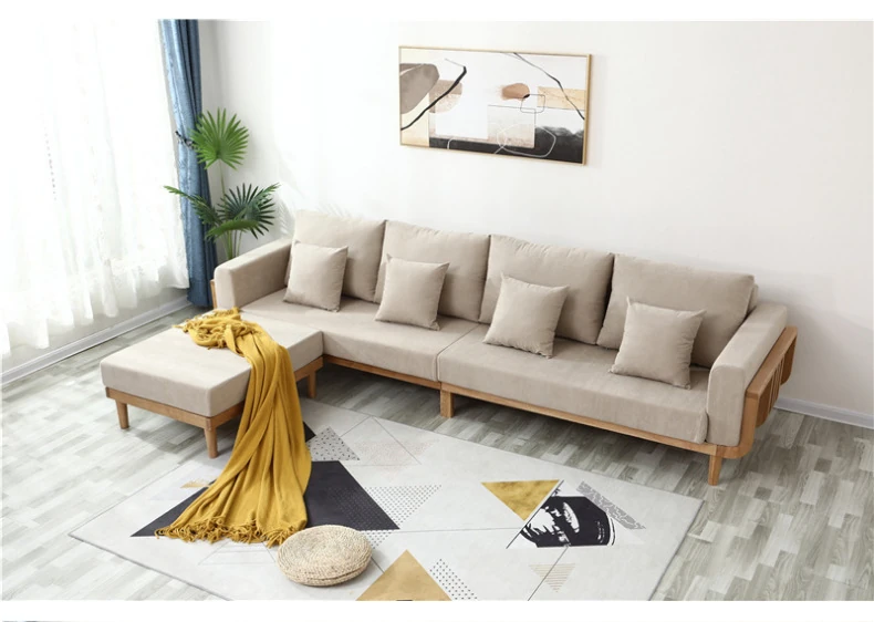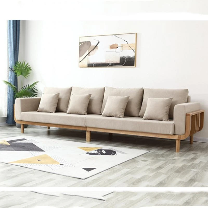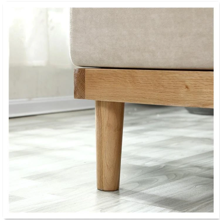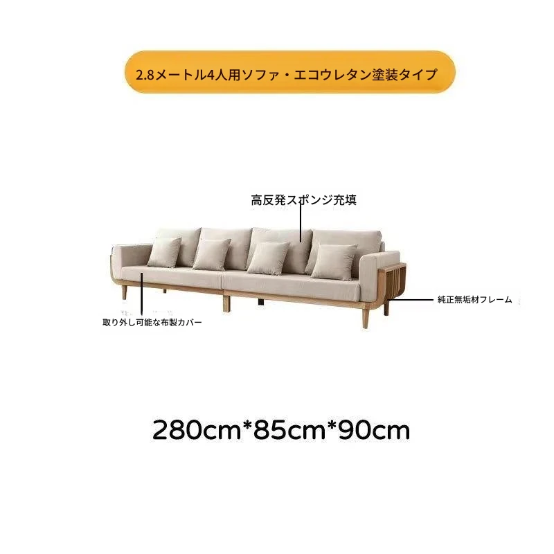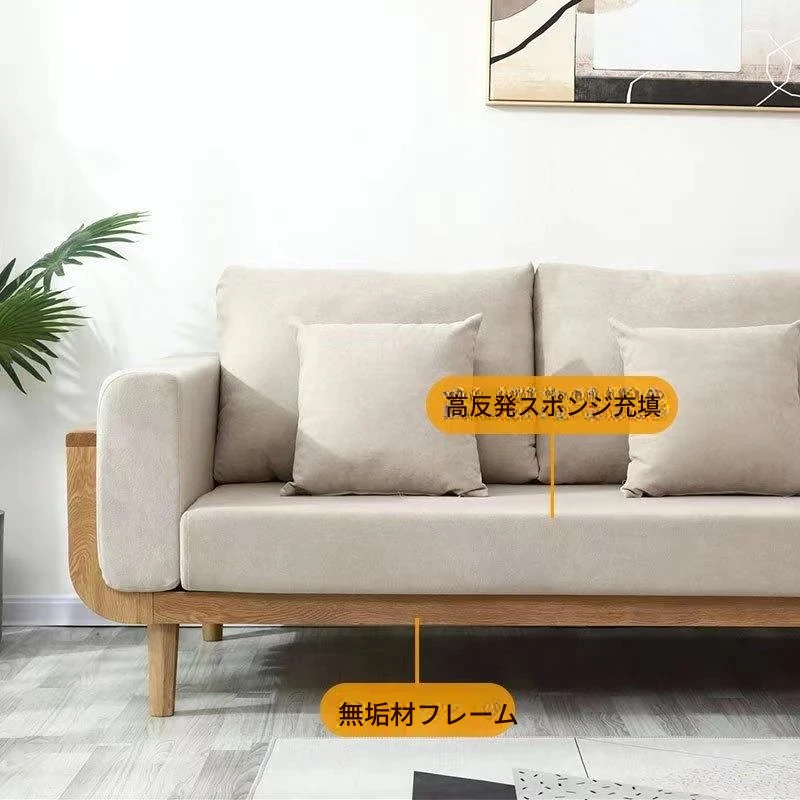 北欧風モダンミニマリスト全無垢材ソファー 小型リビングに最適!オーク材とファブリックのコンビネーション、角型デザインでスペースを有効活用。おしゃれで快適な空間を実現!