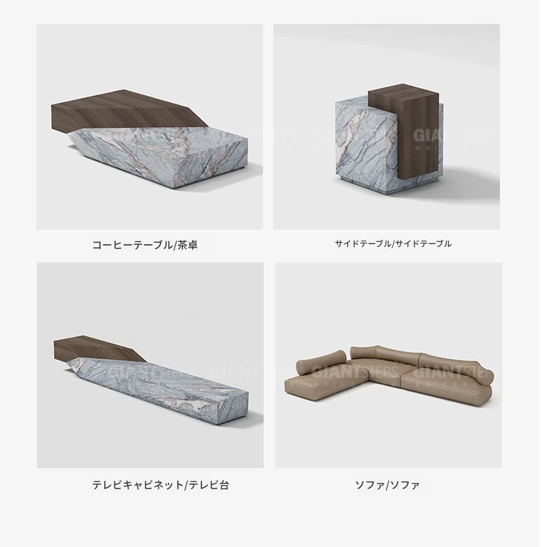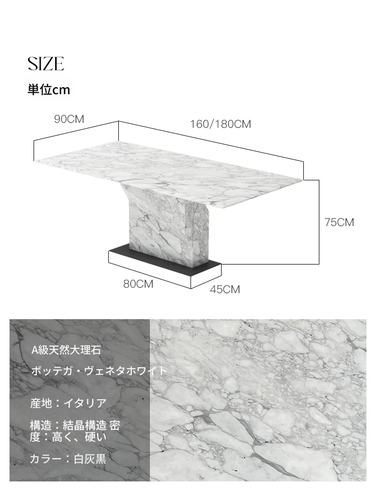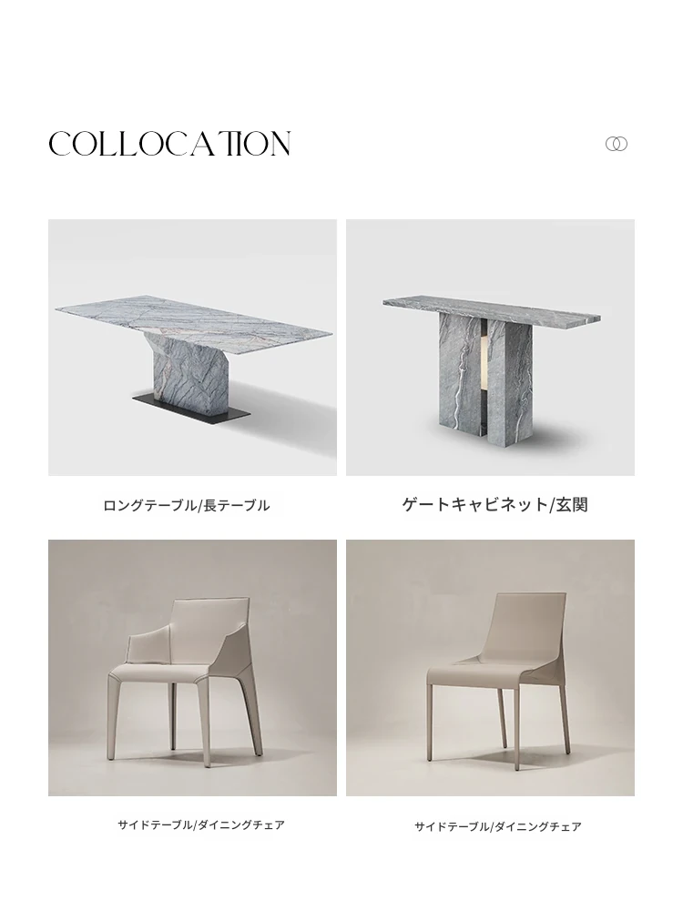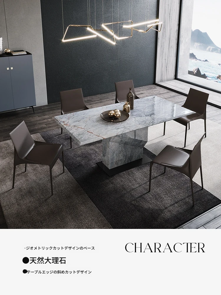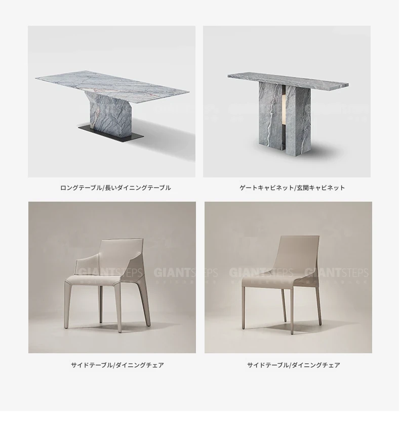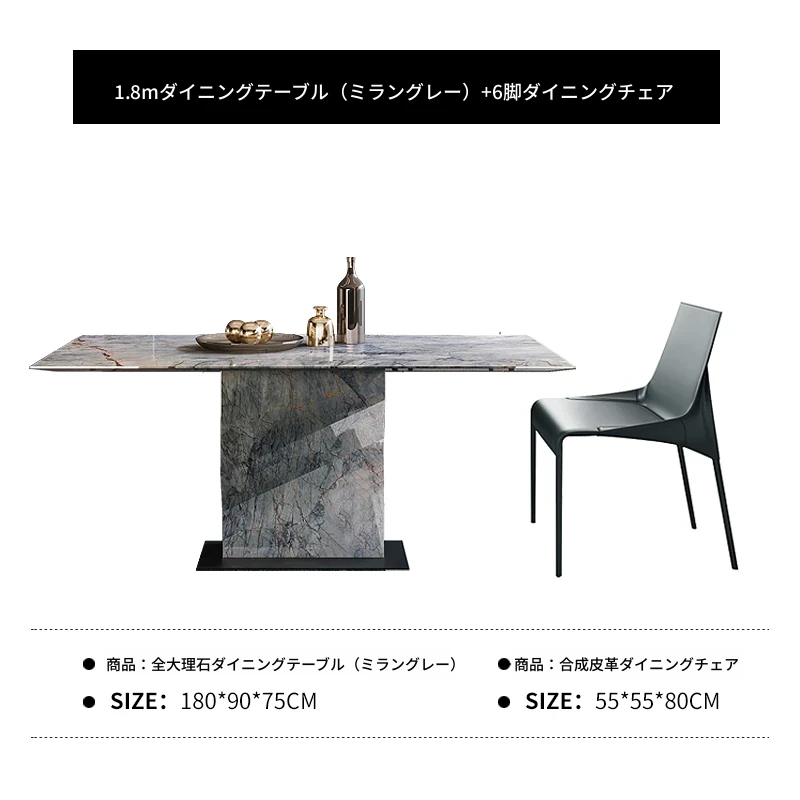 1.8m【全石タイプ(イタリア・ミラングレー)】+6脚ダイニングチェア