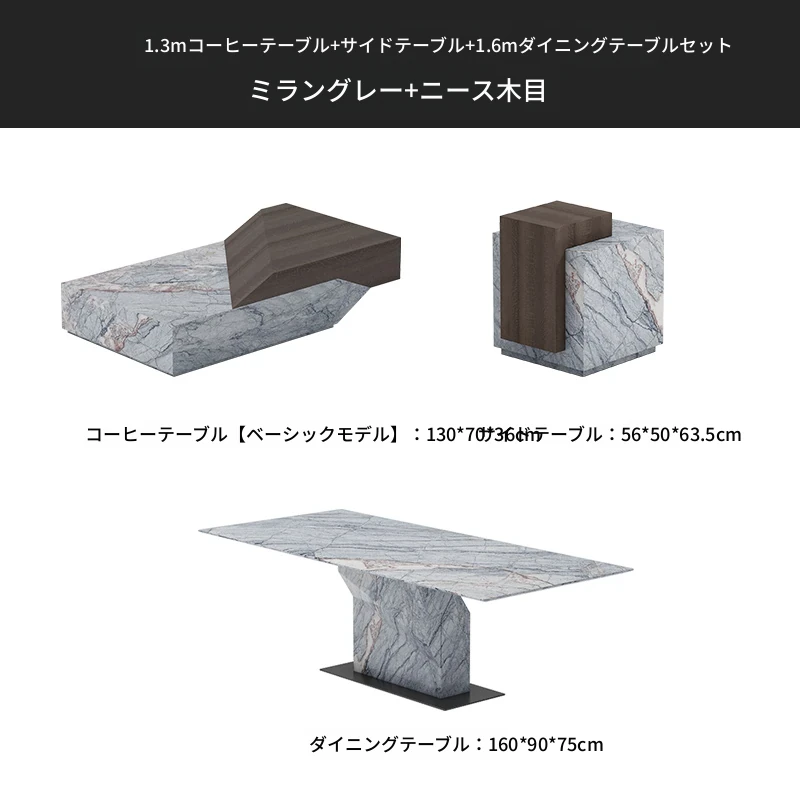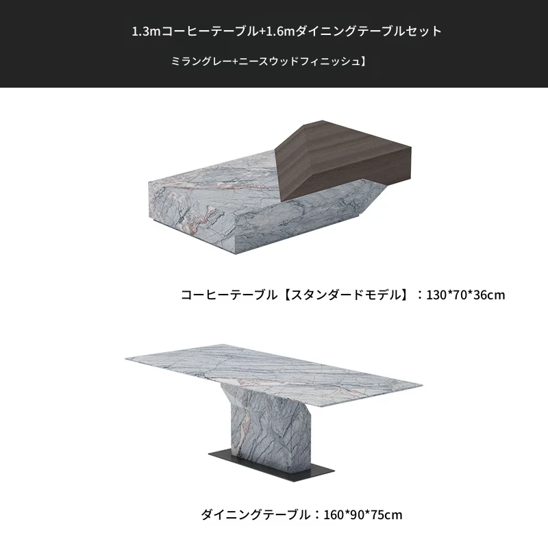 1.6mダイニングテーブル+1.3mコーヒーテーブル【イタリア・ミラングレー】