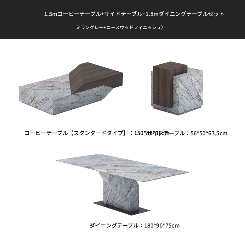 1.8mダイニングテーブル+1.5mコーヒーテーブル【イタリア・ミラングレー】