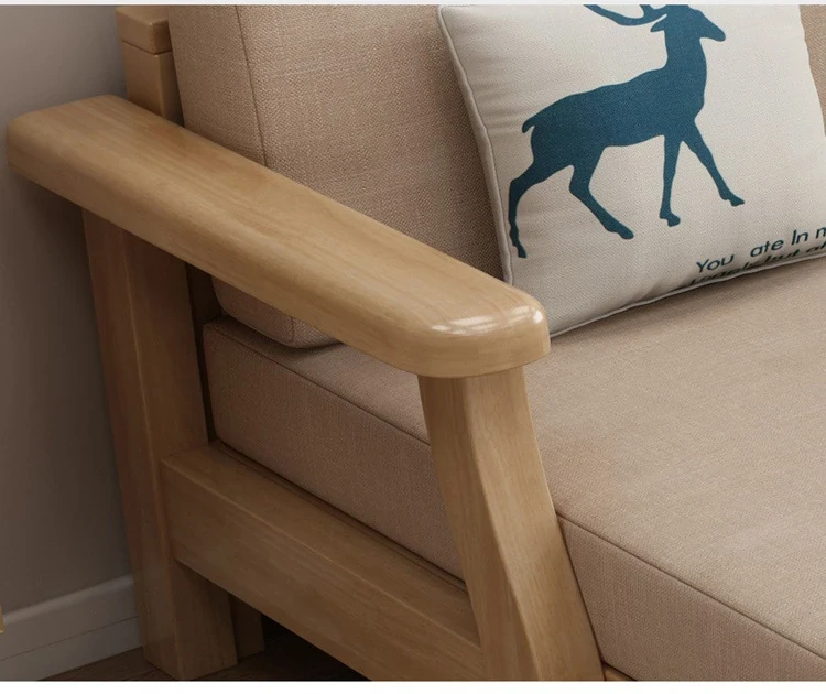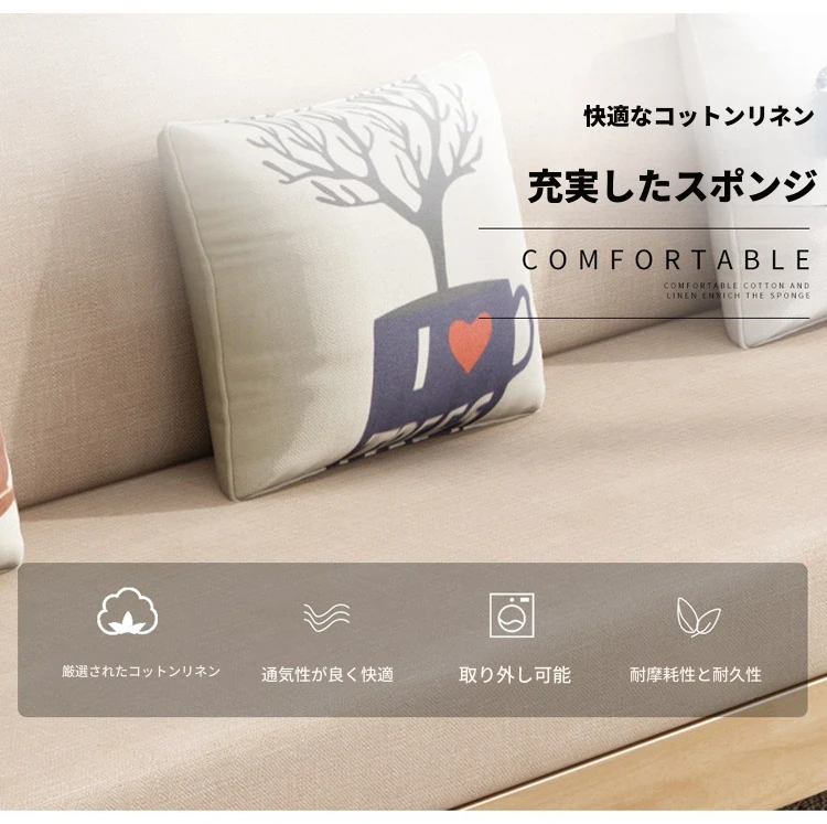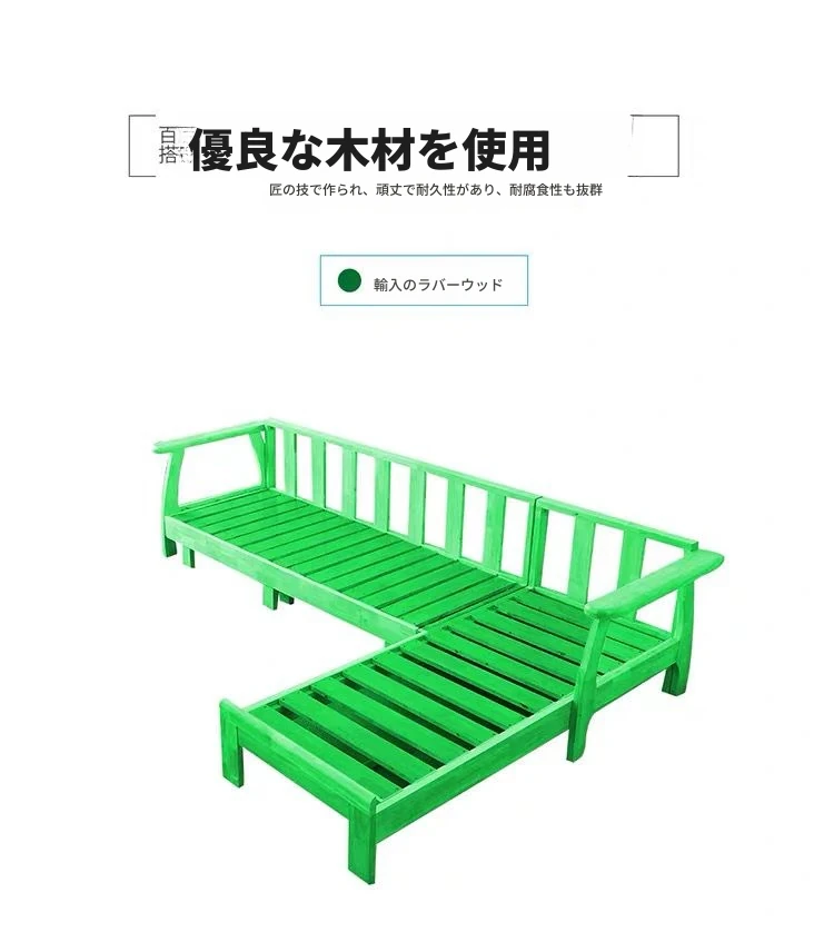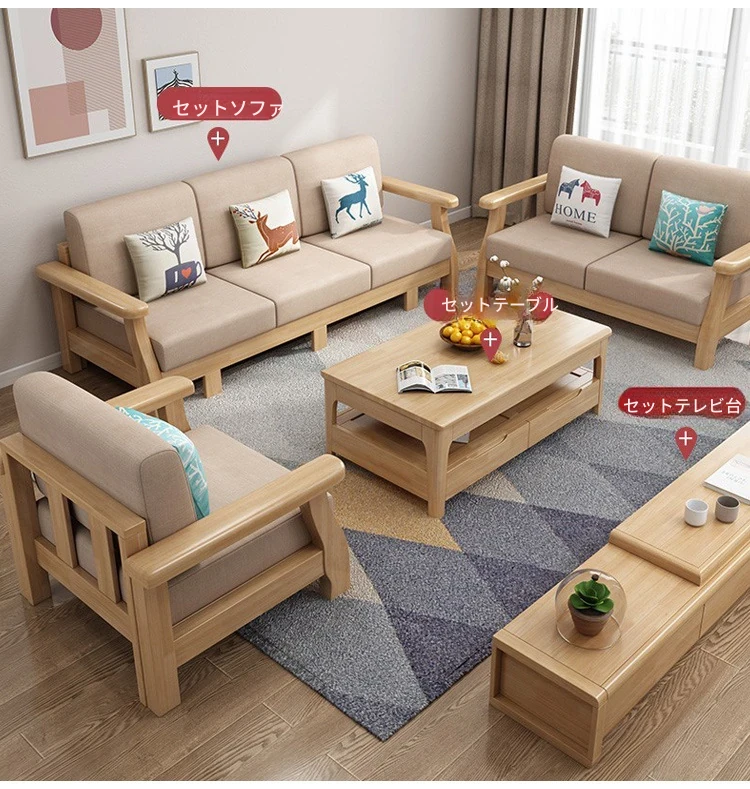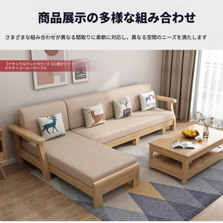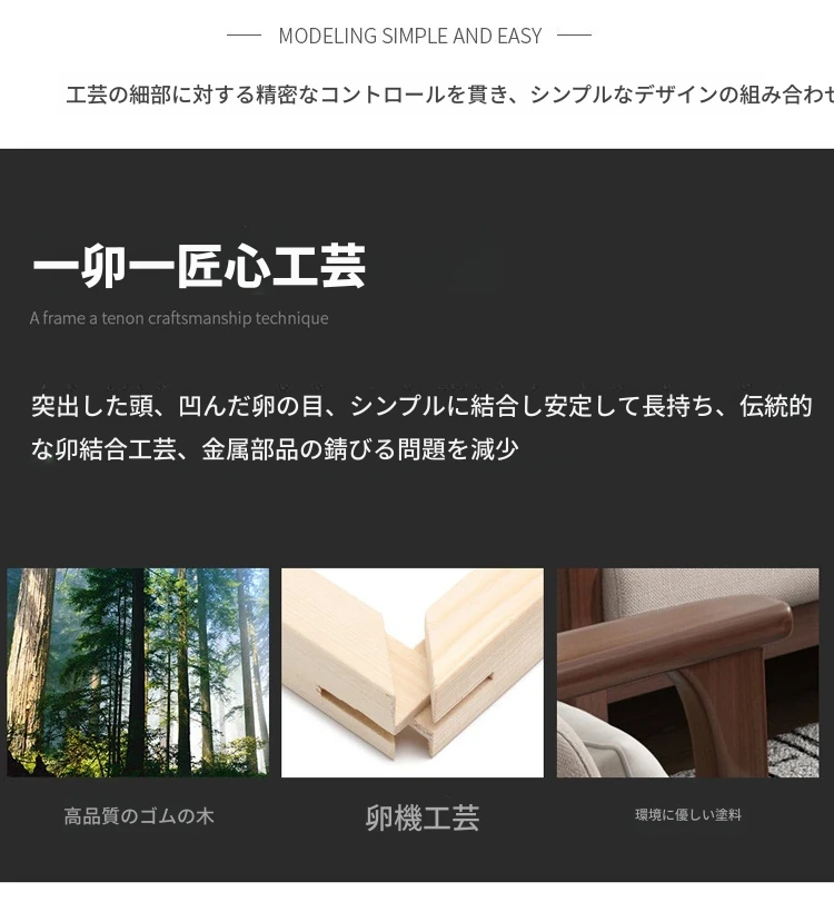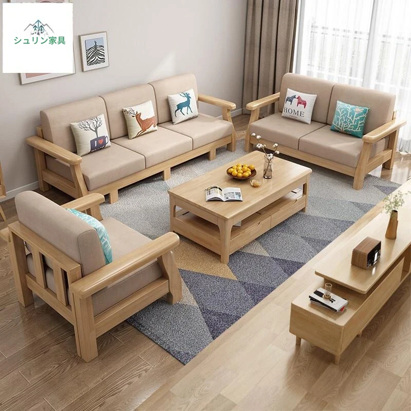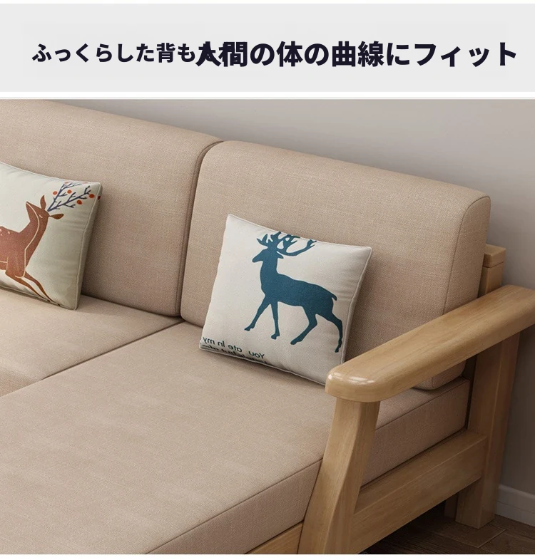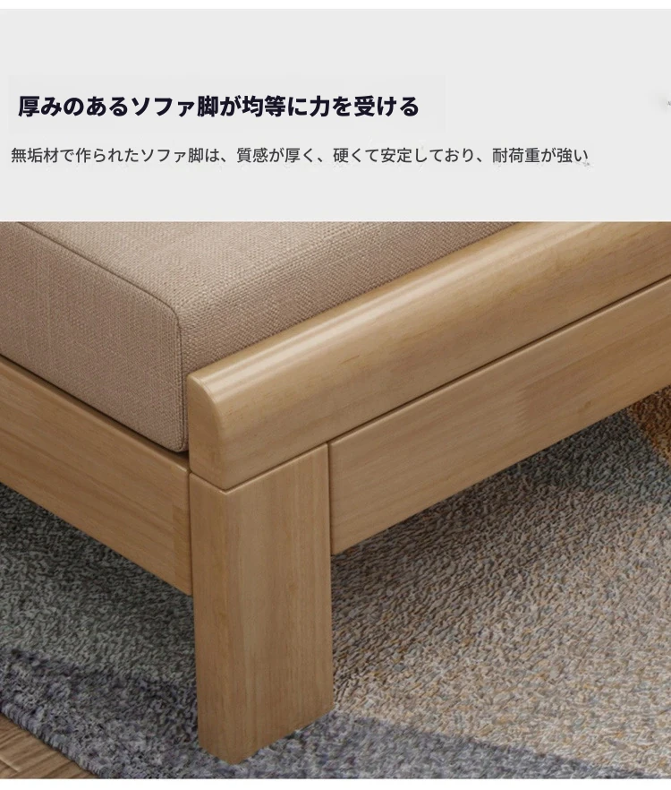 北欧スタイルのリビングソファ - 木と布の融合で、和風のダブルデイベッドコンビネーション!小型住宅に最適な実木製のラウンジ家具で、快適なひとときをお楽しみください!