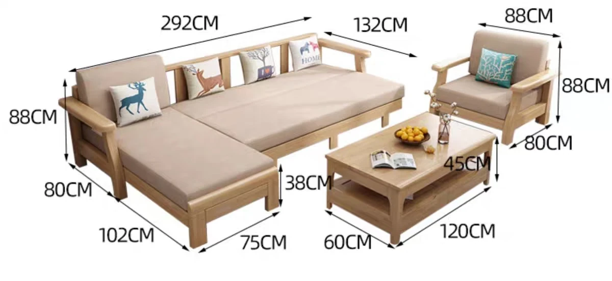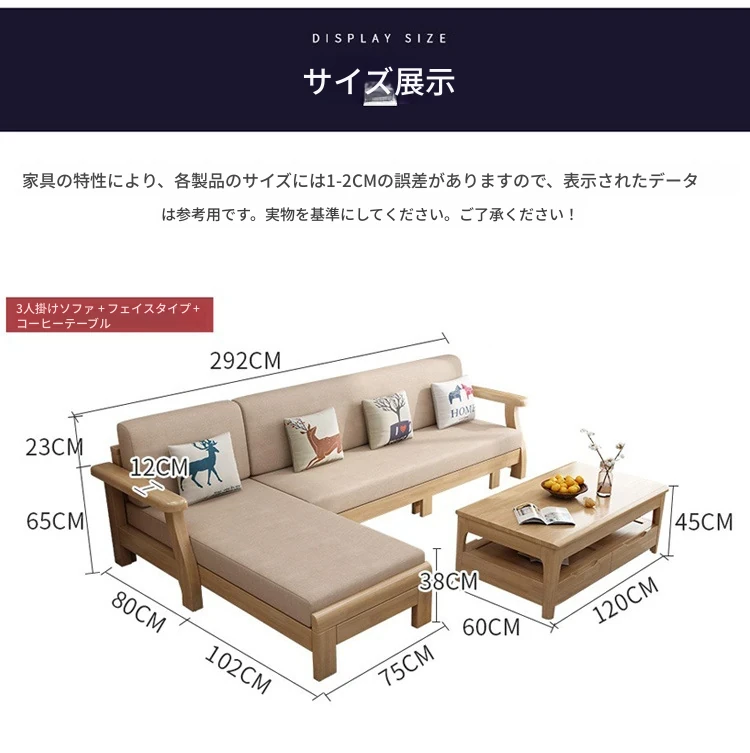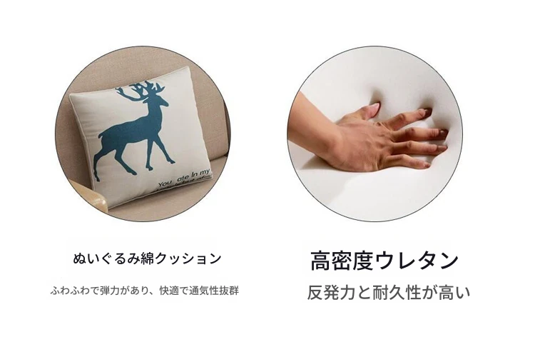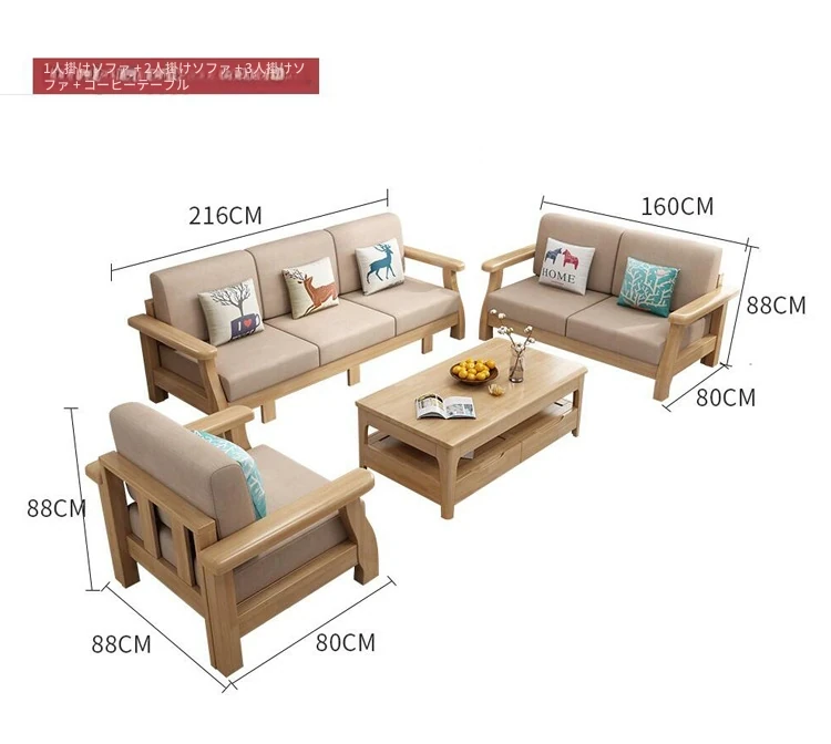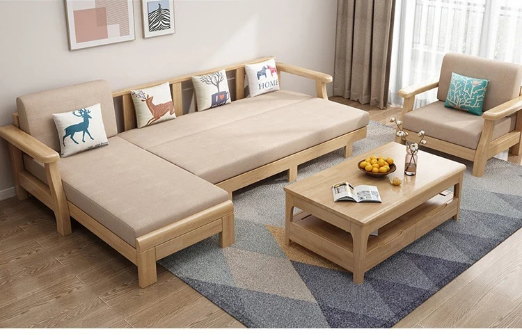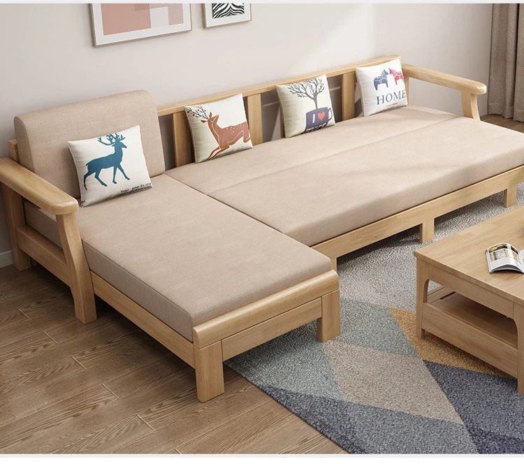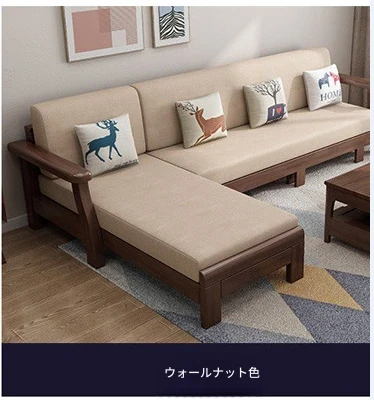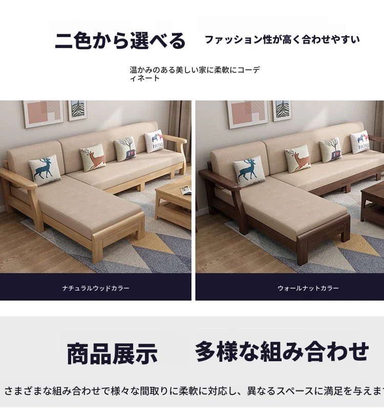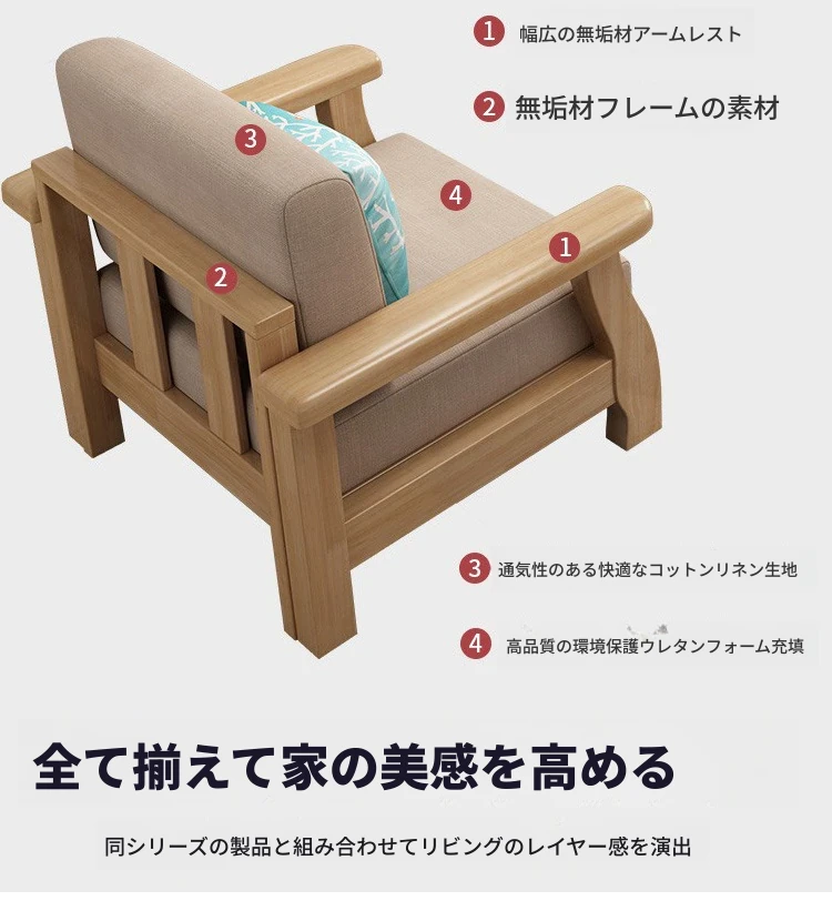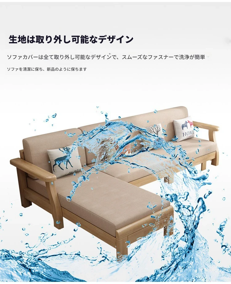 北欧スタイルのリビングソファ - 木と布の融合で、和風のダブルデイベッドコンビネーション!小型住宅に最適な実木製のラウンジ家具で、快適なひとときをお楽しみください!