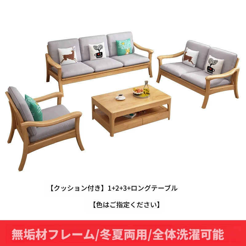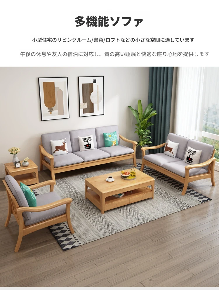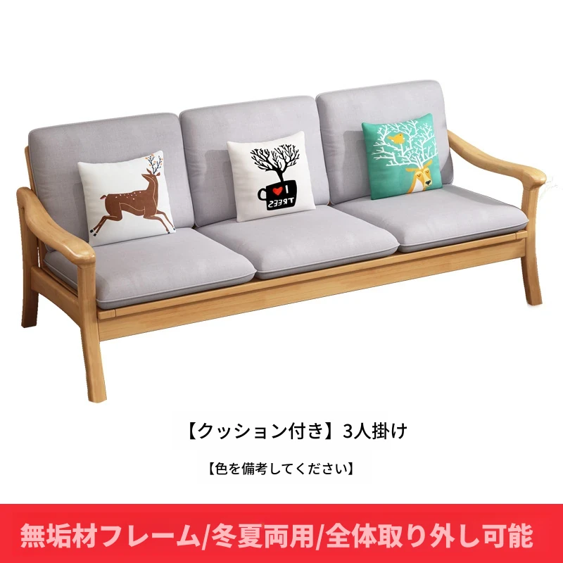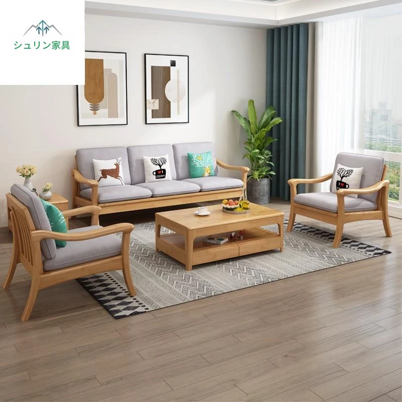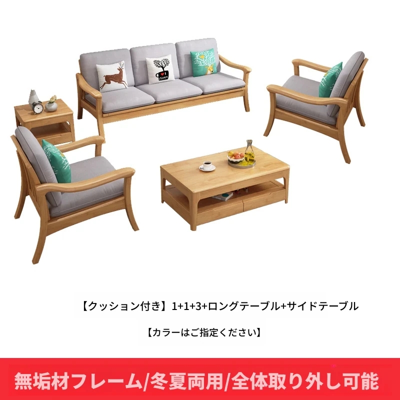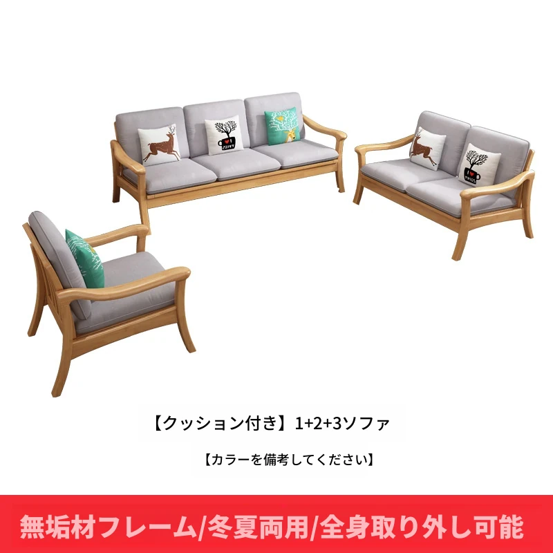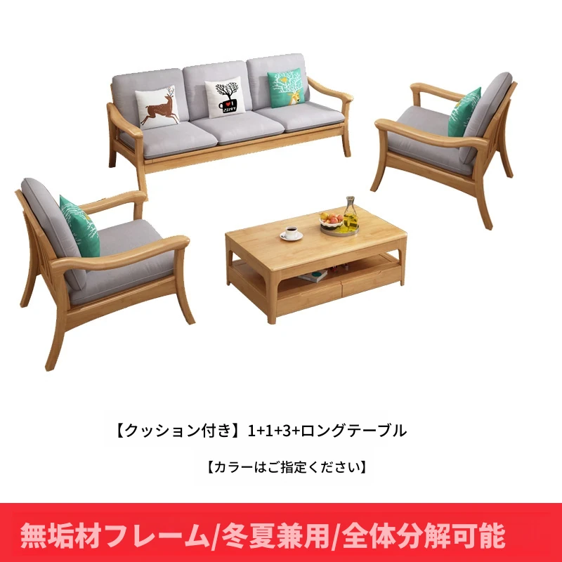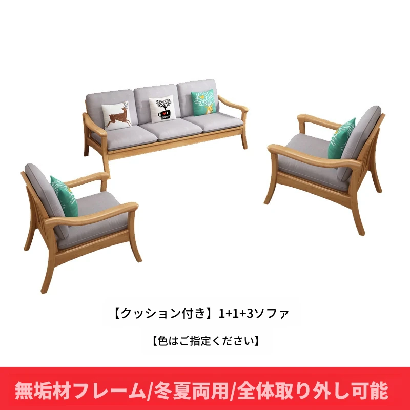 北欧スタイルの冬夏両用実木ソファセット|モダンでシンプルな小型リビング家具|オフィスや民宿・アパートにも最適!