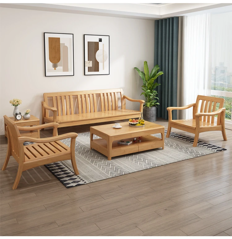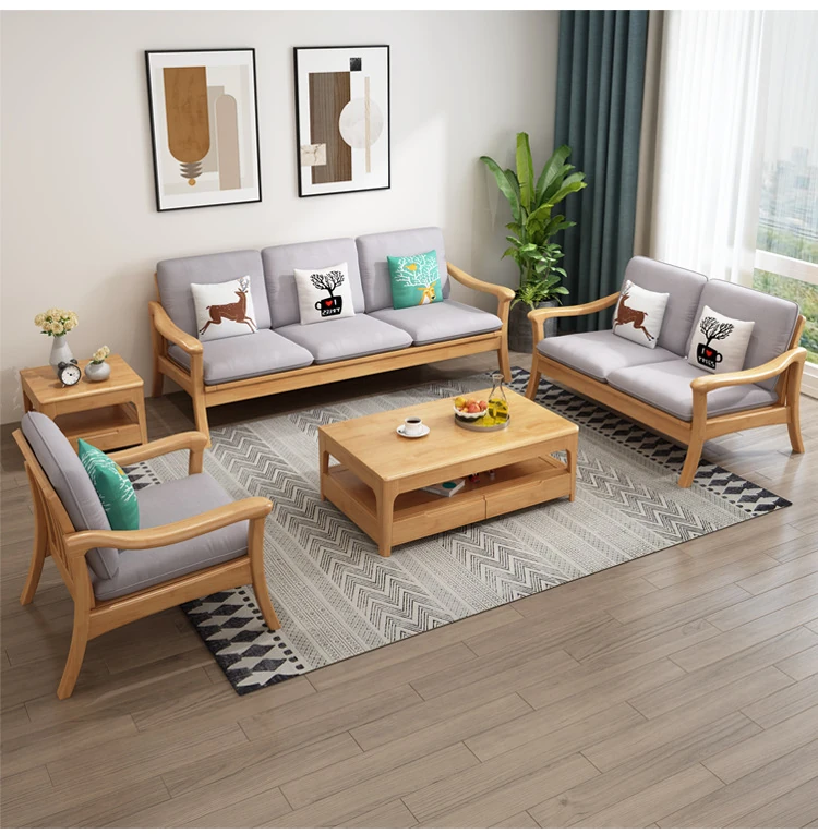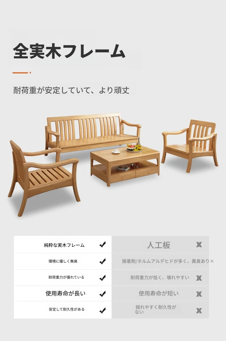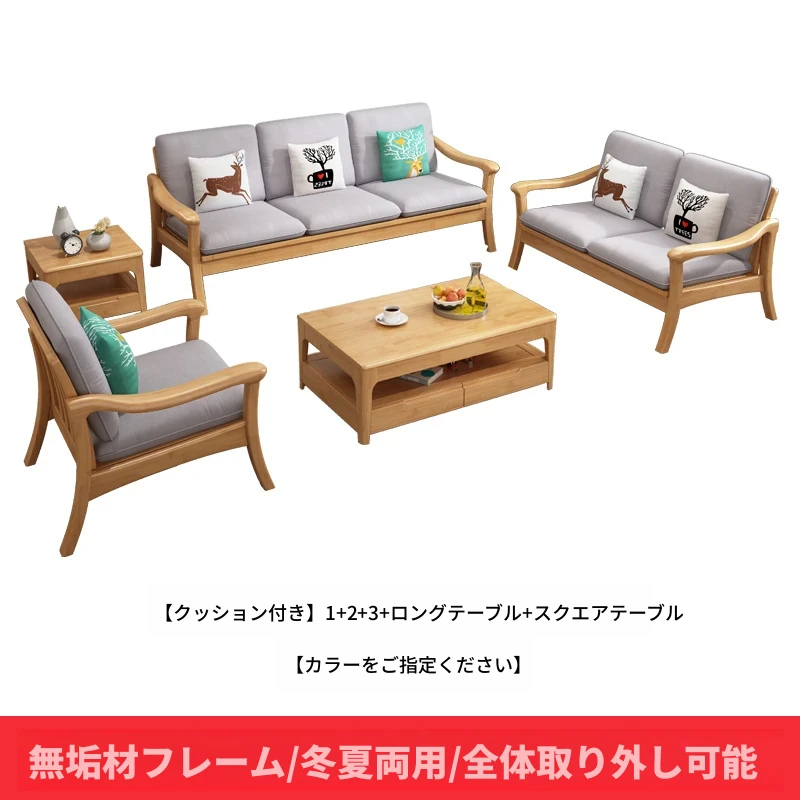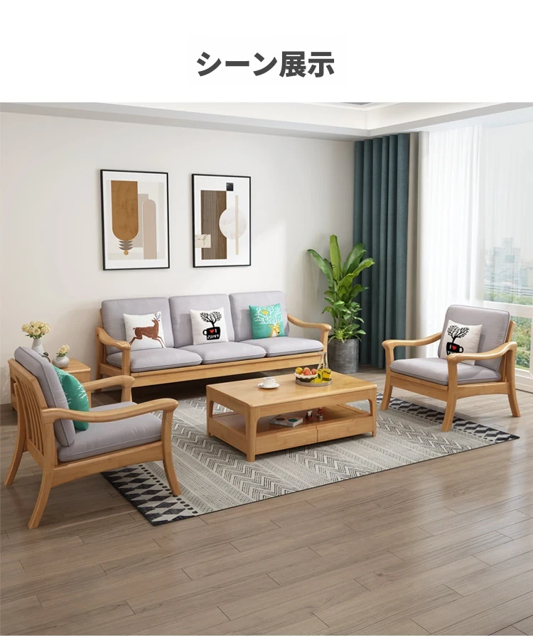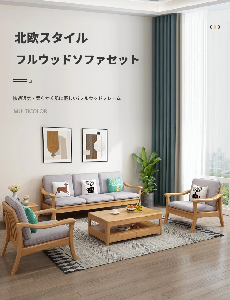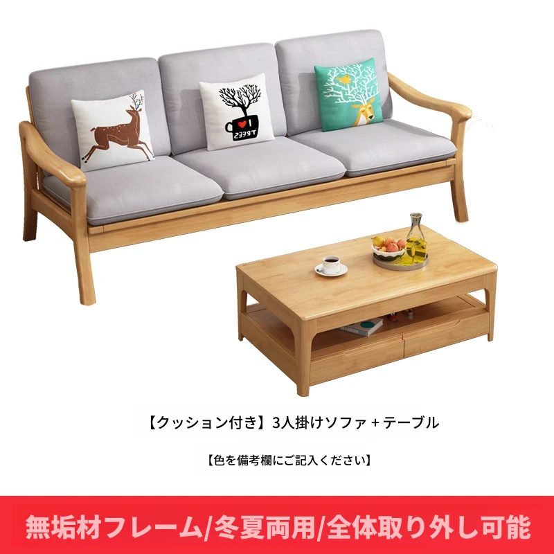 北欧スタイルの冬夏両用実木ソファセット|モダンでシンプルな小型リビング家具|オフィスや民宿・アパートにも最適!