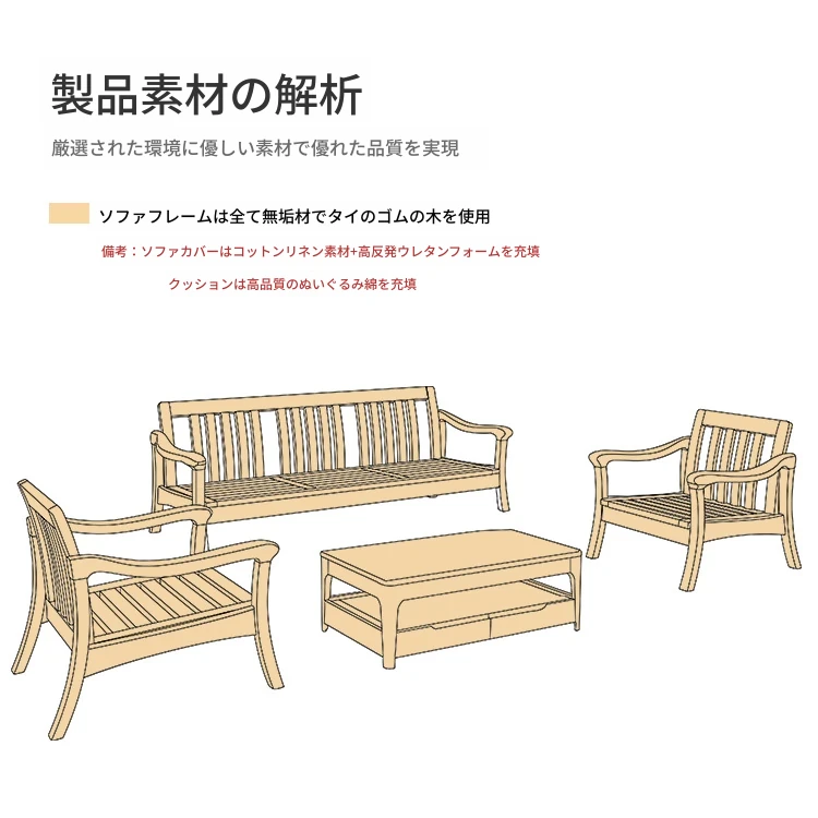 トリプルソファ+コーヒーテーブル【クッションなし】